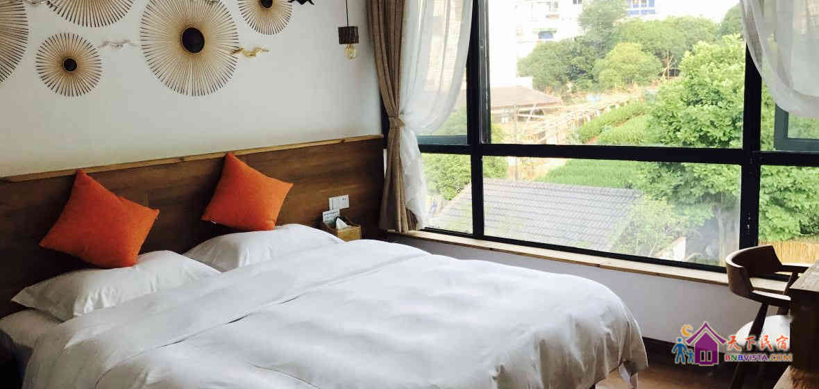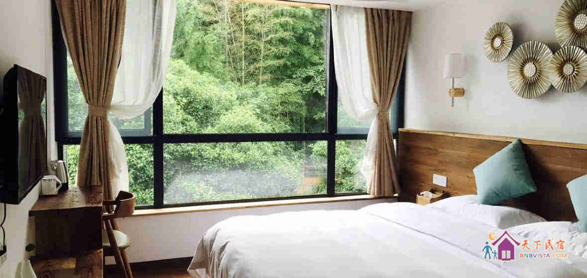 小院更有潺潺溪水流淌院落之中,院落内的百年桂花树与翠竹林与成为小院一道独特靓丽的风景,店主人热情好客,小小民宿共有10间客房,每一间都有自己的故事。独揽整个龙井茶山的观景大床房及观景双床房,清晨,伴着鸟儿清脆的叫声醒来,睁开双眼便映入满眼绿意盎然,睡意犹存的伸个长长的懒腰,如此惬意并不只在睡梦里;还有独具风格的榻榻米以及午后阳光房,午后的阳光总是带着暖暖的爱意洒满整间屋子,沐着暖暖的阳光,靠在窗前发呆亦或是看一本闲书,再来一杯醇香的绿茶,此刻,不想被任何打扰,只想活在自己小小的世界里,只做自己;舒适安逸的家庭房适合全家出游居住亦或是三五好友小聚。