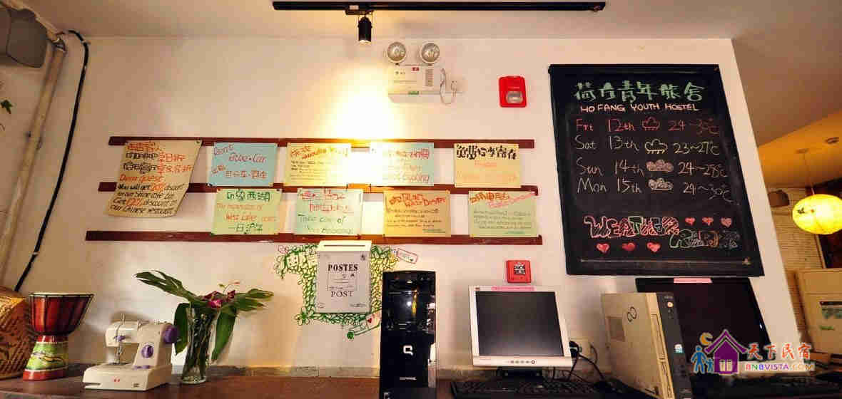 旅舍为一栋经过修复的中国江南传统建筑,白墙黛瓦,花格窗棂,房屋内的椽梁交错均是典型的江南风格。整个旅舍由住宿区、室内外公共休息区、咖啡吧、中餐厅组成,提供的多种客房类型,且具有中国传统特色,房内配有舒适的床铺、电视、热水器及空调等设施。前台还提供旅游咨询及行李寄存、租车、洗衣等服务。