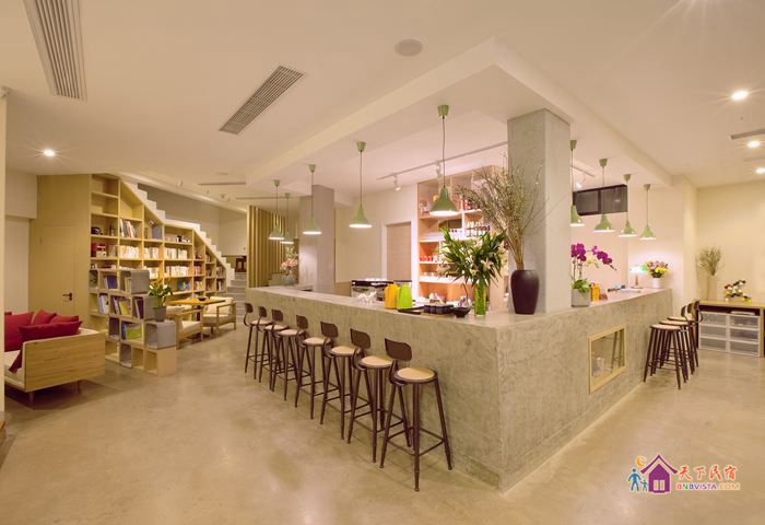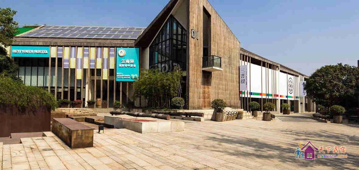 杭州江南驿国际青年旅舍是一个环保设计型的旅舍,位于自然和生态的国家旅游区良渚文化村。周边有山河、湖泊、郊野公园、登山步道及良渚文化博物馆。旅舍改造设计定位具有简朴而高品质的国际气氛。改造过程中为实现环保,尽量保留了原有的设计和材料,并使用了再利用、再生材料。