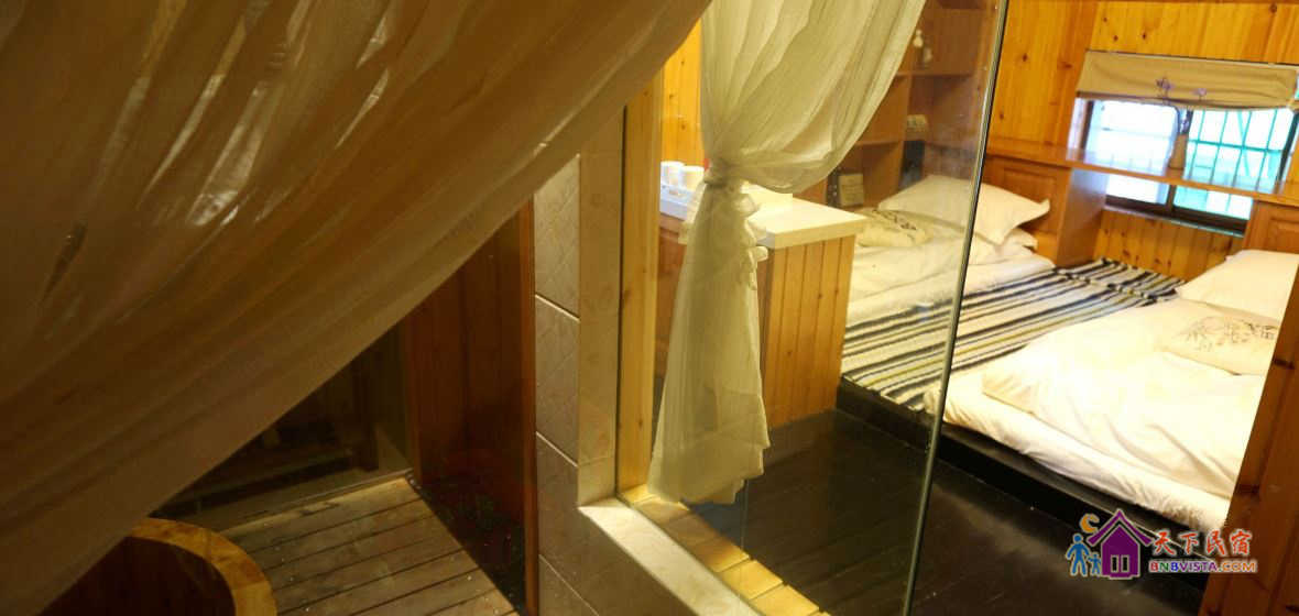 客栈置身于村落深处,适合远足而来的人,或避世喧嚣的人。每当阴雨时节,山林附近就会出现云雾缭绕的景象,犹如走入仙境一般,是一个放松心情的好地方。这里每个房间都会给你惊喜,抬头可以看星望月,心静时可听溪水淙淙,采用了德国进口的第一寝具,洗浴用品全部采用Denise(丹尼诗),其中数个房间有独立的浴缸,大厅供应进口酒水及一级龙井茶叶。