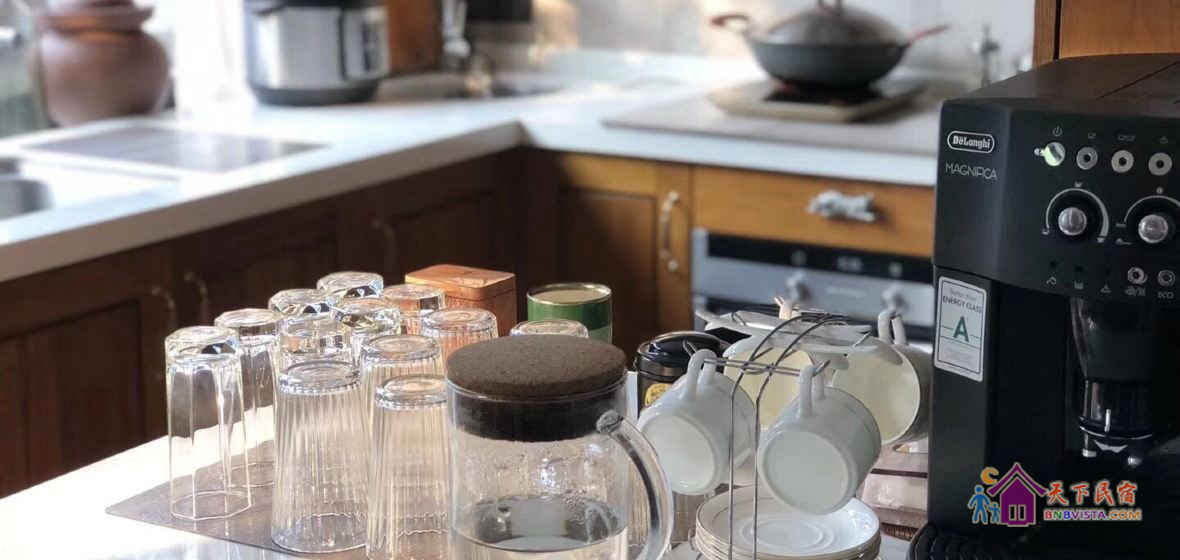 这里还提供开放式厨房、大客厅、茶室。在庭院里,无花果树、橘子树、石榴树、枣树、香椿树四季不停,夏末蝉鸣,秋雨初晴, 桂花正香,可以品茗、阅读,还有音乐和BBQ。