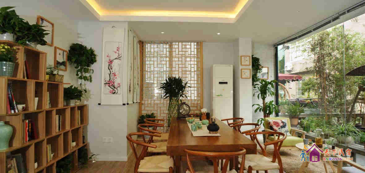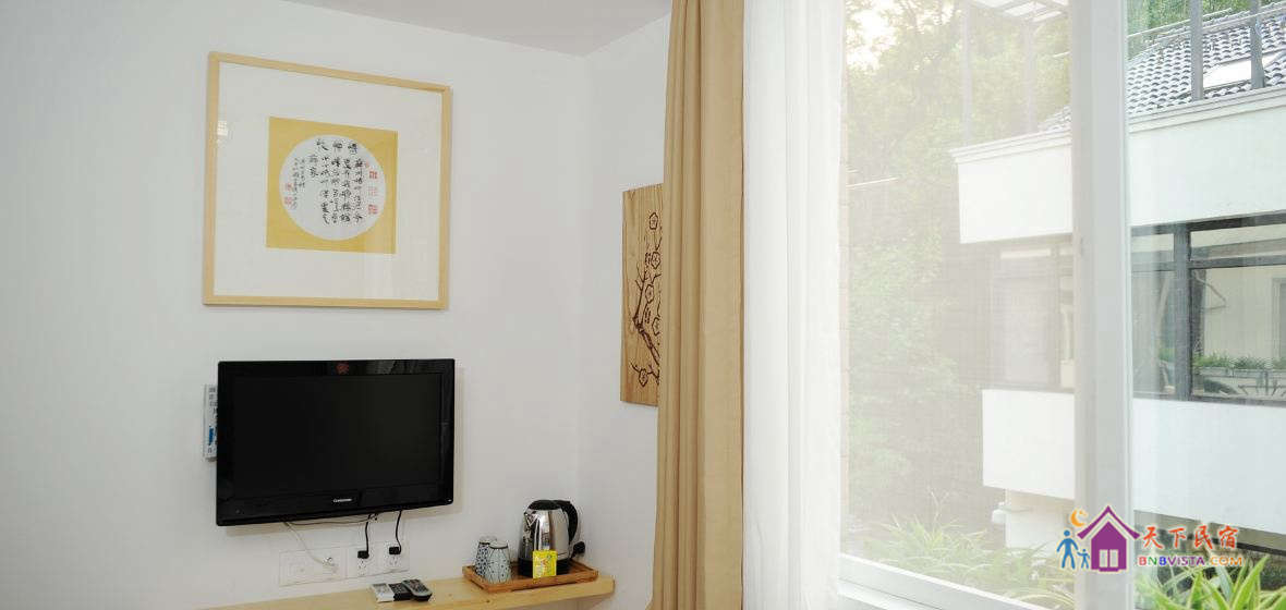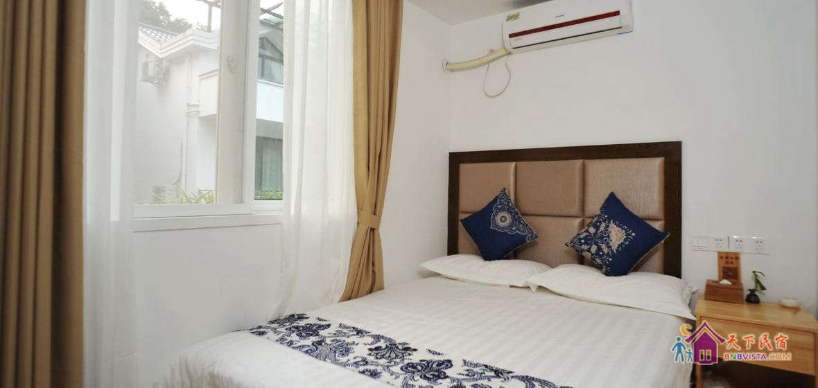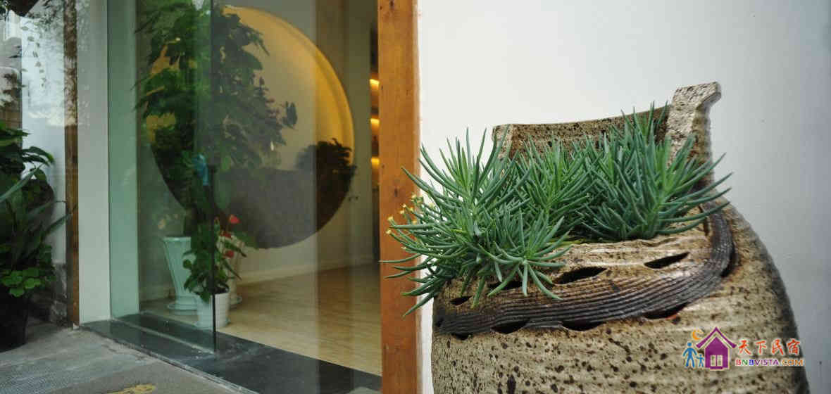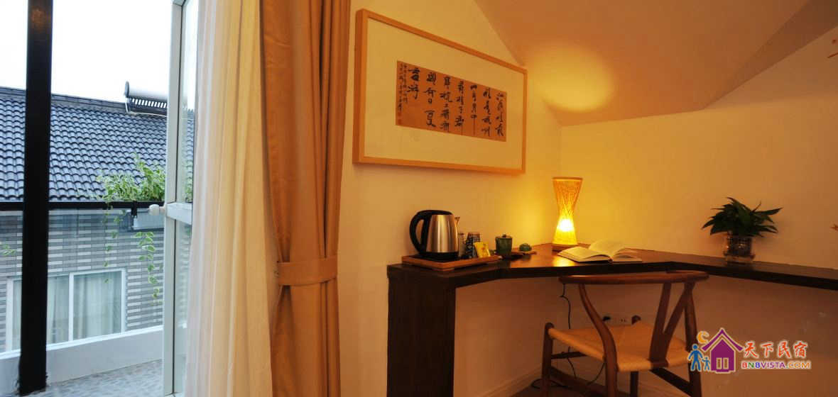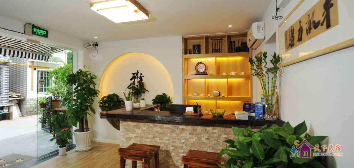 一个庭院加八间房,现代中式装修风格。没有所谓的先锋概念或者创意,却有着大大的书柜和缀满客栈的绿意,简简单单,随心随意。希望这里不仅是您清雅、舒适的休憩之所,也是品茶、读书、静思的修心之地。