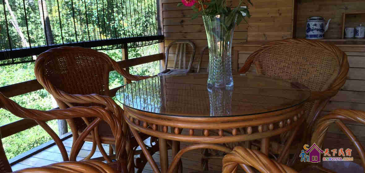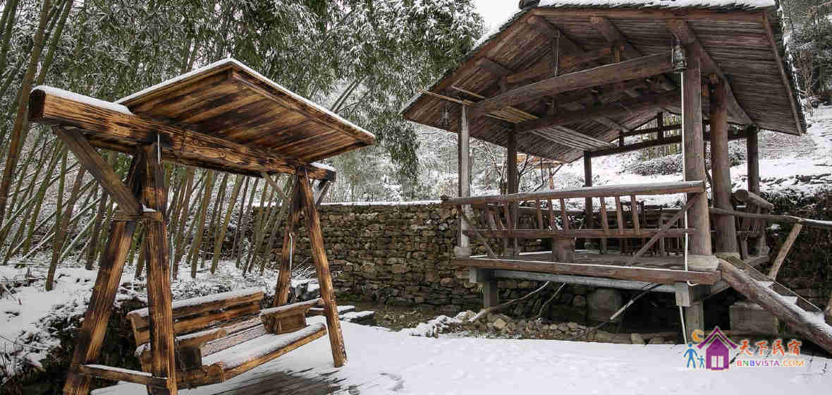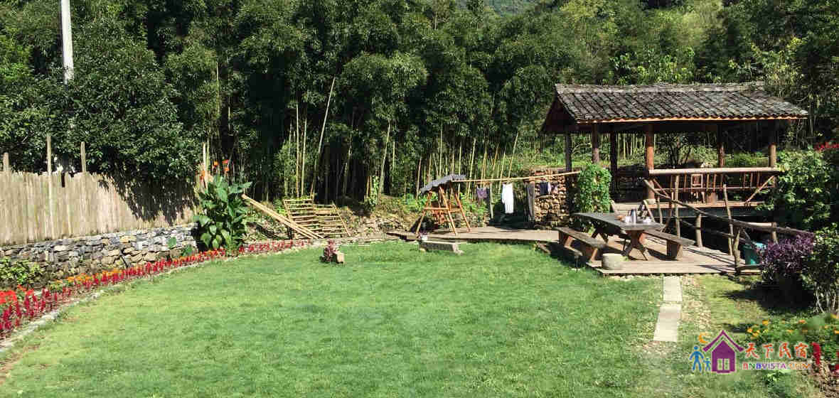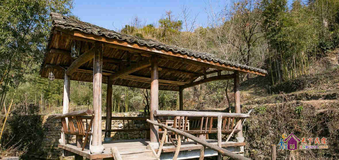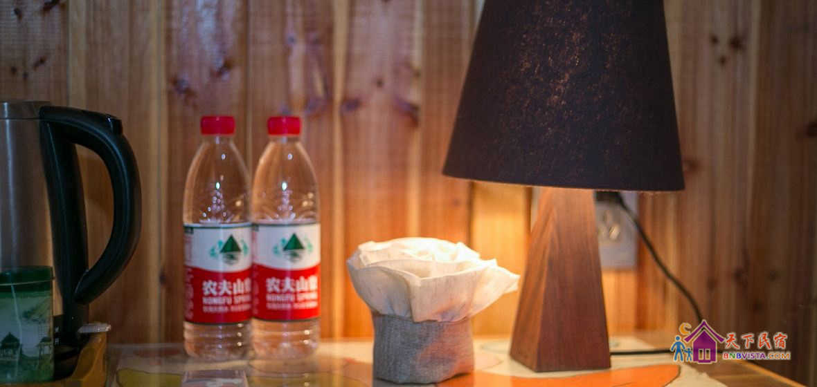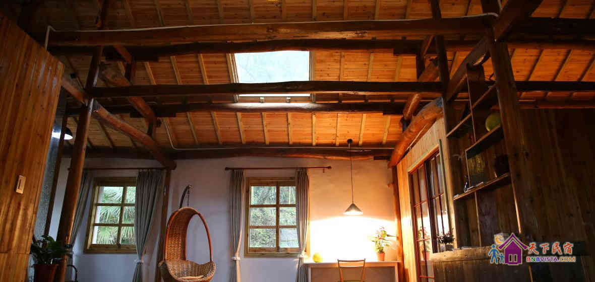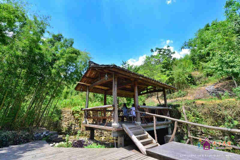 舍馆情怀山野,耳畔是啁啾的鸟鸣,风吹竹叶的簌簌声,清澈小溪的流水声,在留声机绵长的切切情谊里,你可以晒着明媚的阳光品咖啡,也可以登上屋顶露台,像儿时一样数星星。舍馆内随意摆放着一些旧东西,具有很强的时代印记:古董太师椅、老书刊、老式的收音机...黄昏的时候,院中老树上的那盏马灯会被点亮。暖暖的灯光,错落的原木桌椅,三五好友或亲密恋人,温馨如归,浪漫像花儿一样盛开。
