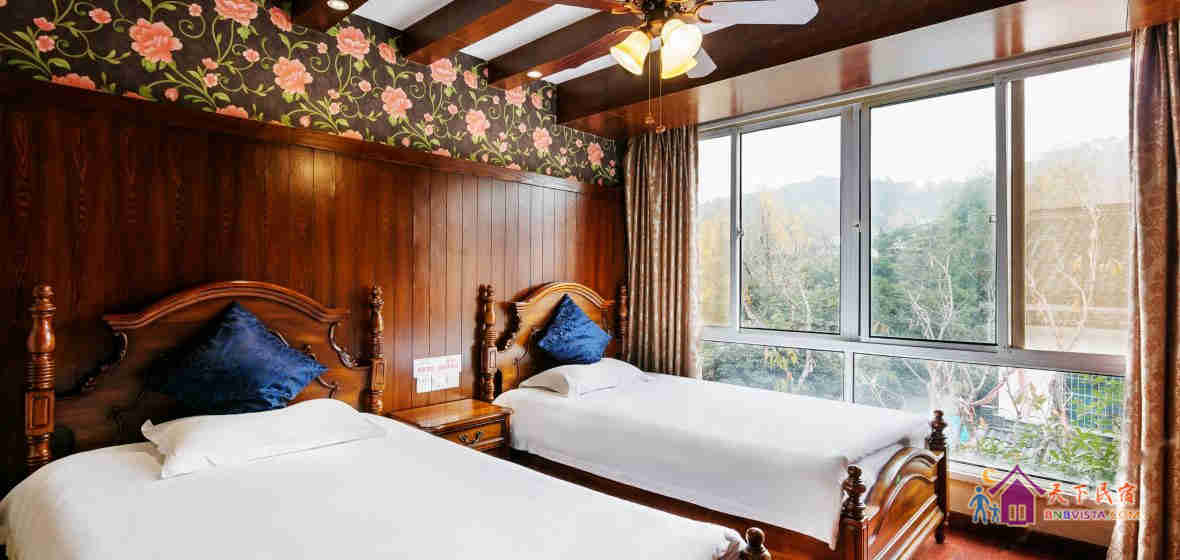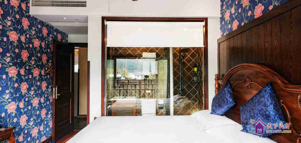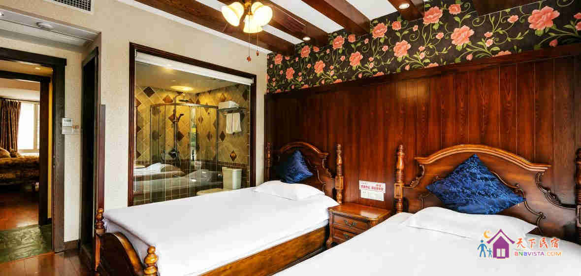 - 所有房型: 舒适大床房,阳台大床房,阳光双床房卫生间,四人间(整租),雕花床单人间,混住多人床位间,山谷大床房