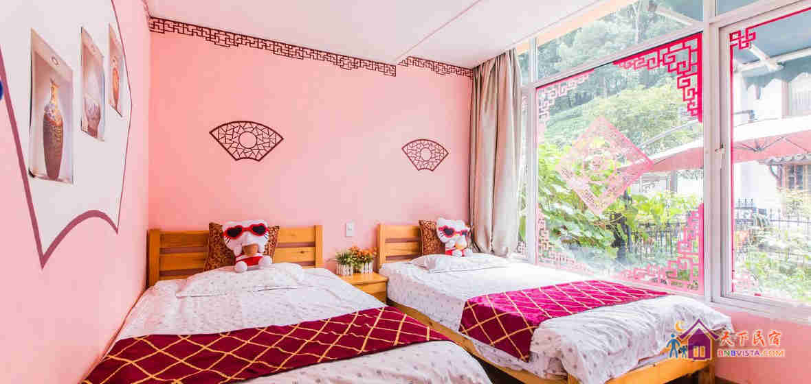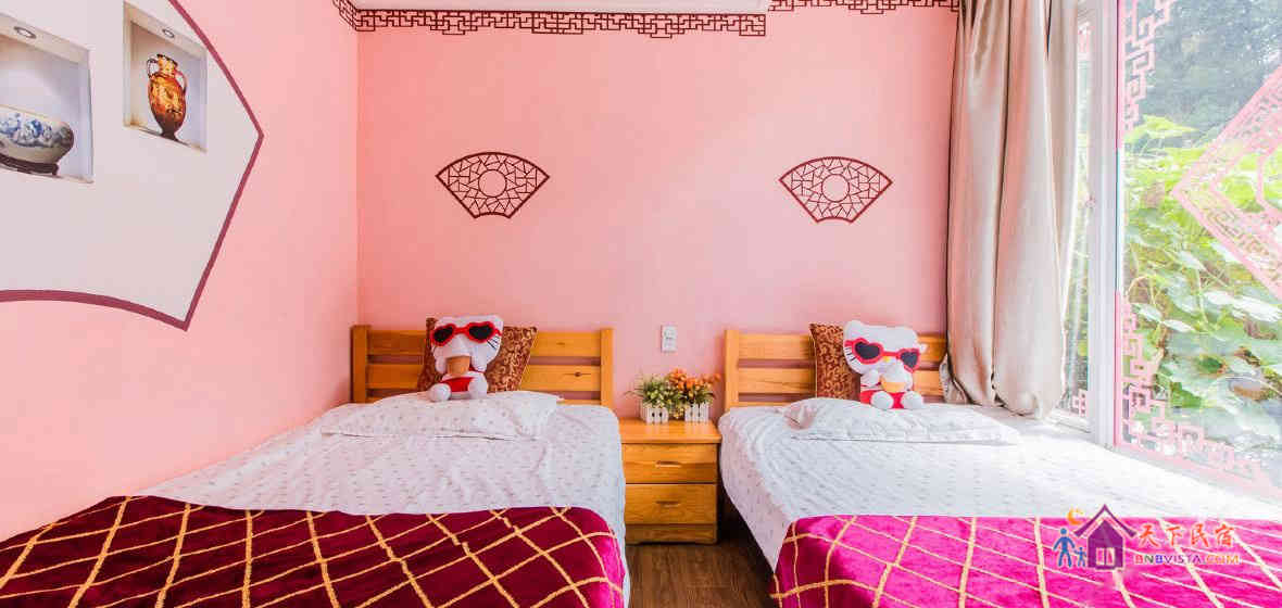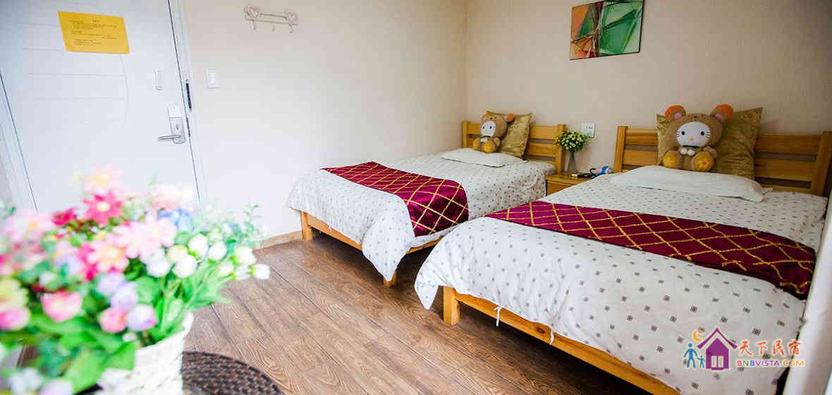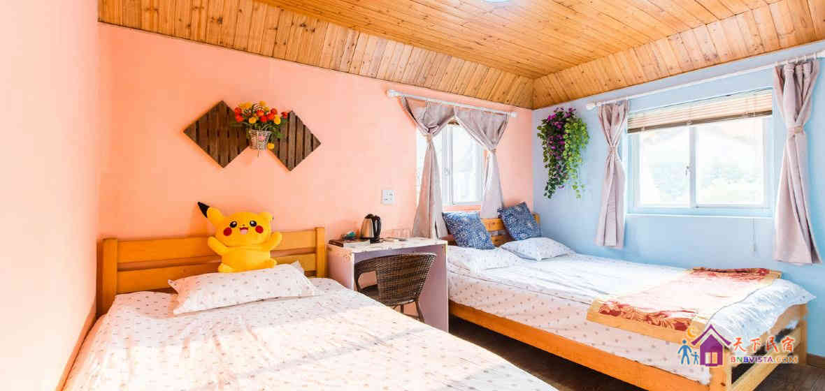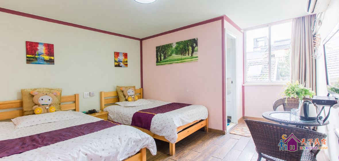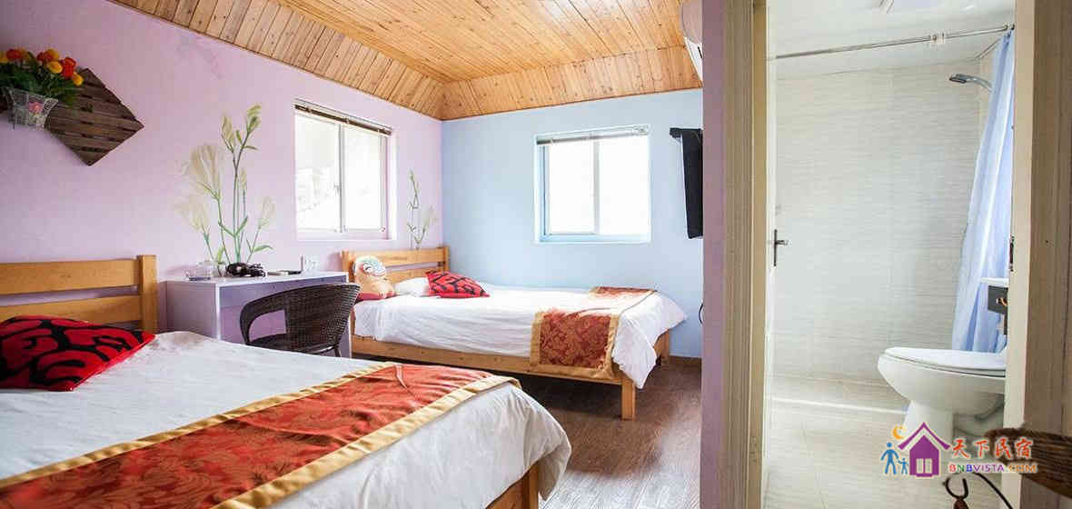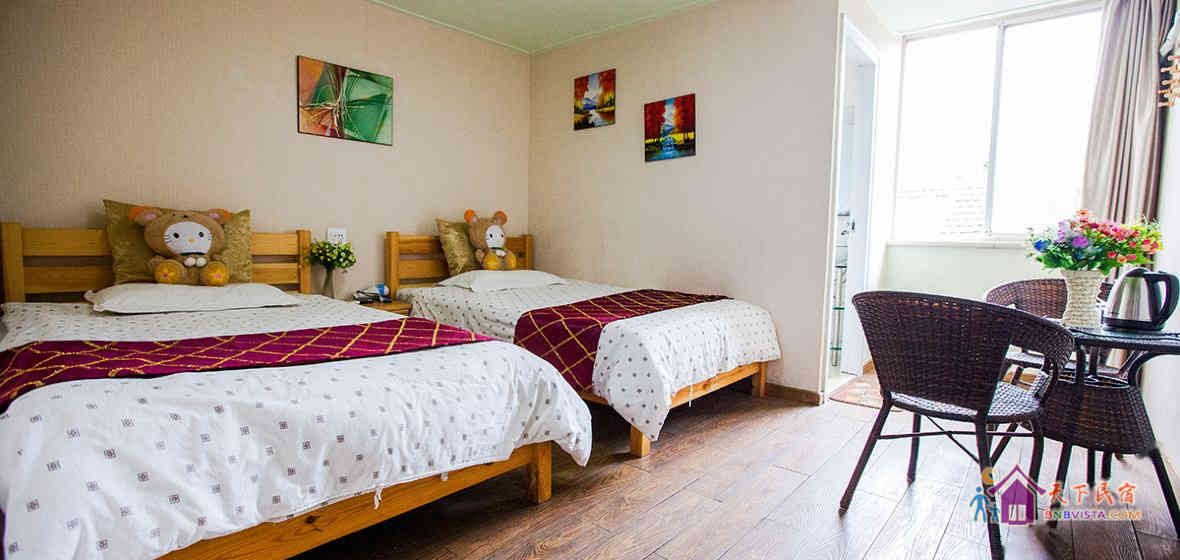踏着楼阶而上,转过同样精心布置的小阳台,便是个个风格迥异的房间。明朗温馨的家庭房,尽显诗意的标间,匠心独具的特色屋,精巧活泼的各个小居,还有笑声不断的多人间等等,各具特色,喜迎四方宾客!