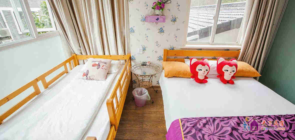 - 说明: 17平方米|1张1.8米,双人床和1张1.2米,单人床|多床|无早|
