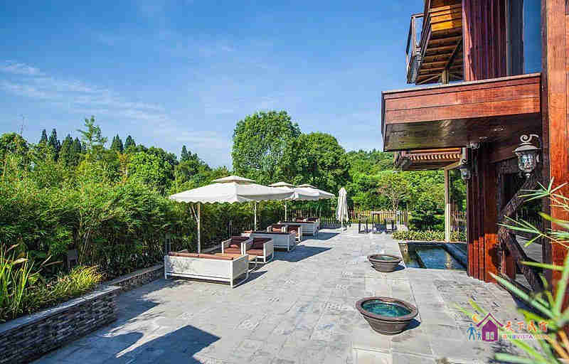 杭州热土庄园占地约50亩。房内皆设有地暖,在冬天,小朋友光脚踩在地上你也不用担心会着凉。连接浴室配备有吹风机及欧舒丹洗浴用品。别墅设有庭院及小型室外浴池供私人使用,还有花园式露天阳台,