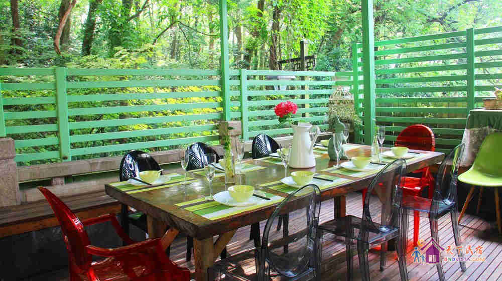 客栈配备创意餐厅,也是杭州小有名气的文艺范聚餐地。树林、阳光、音乐、美食,承载停留的最好旅行时光。