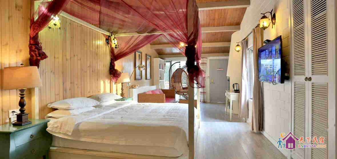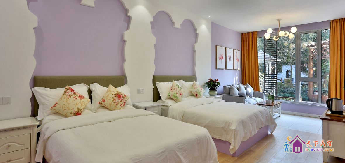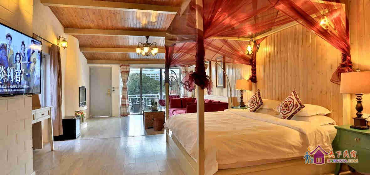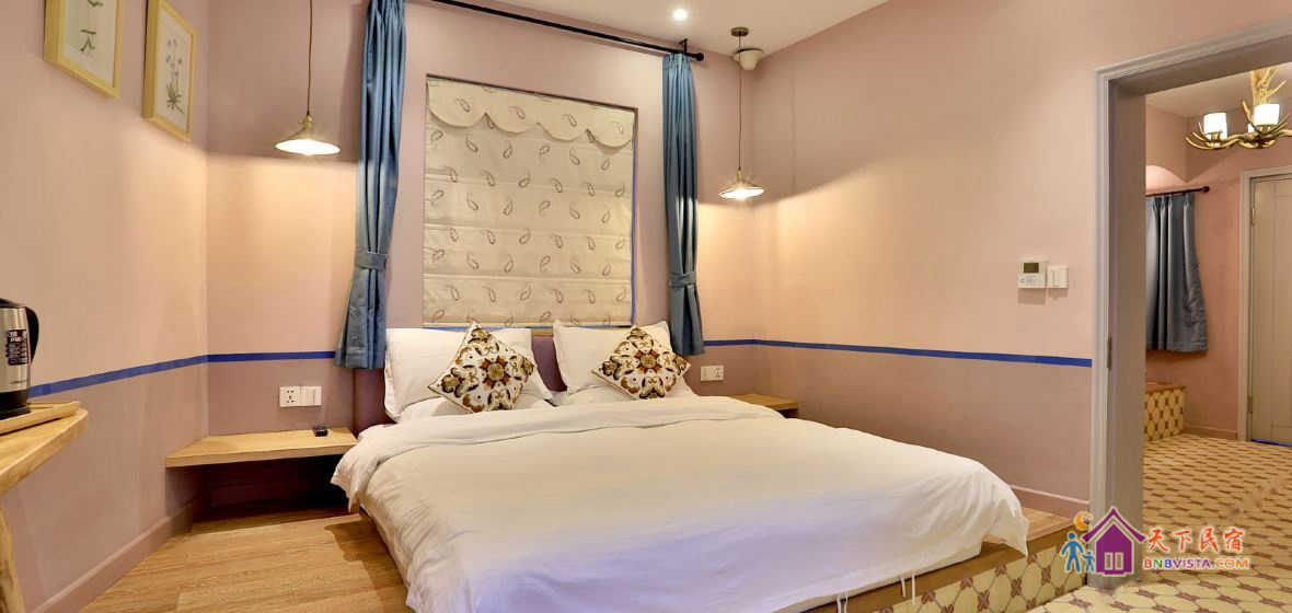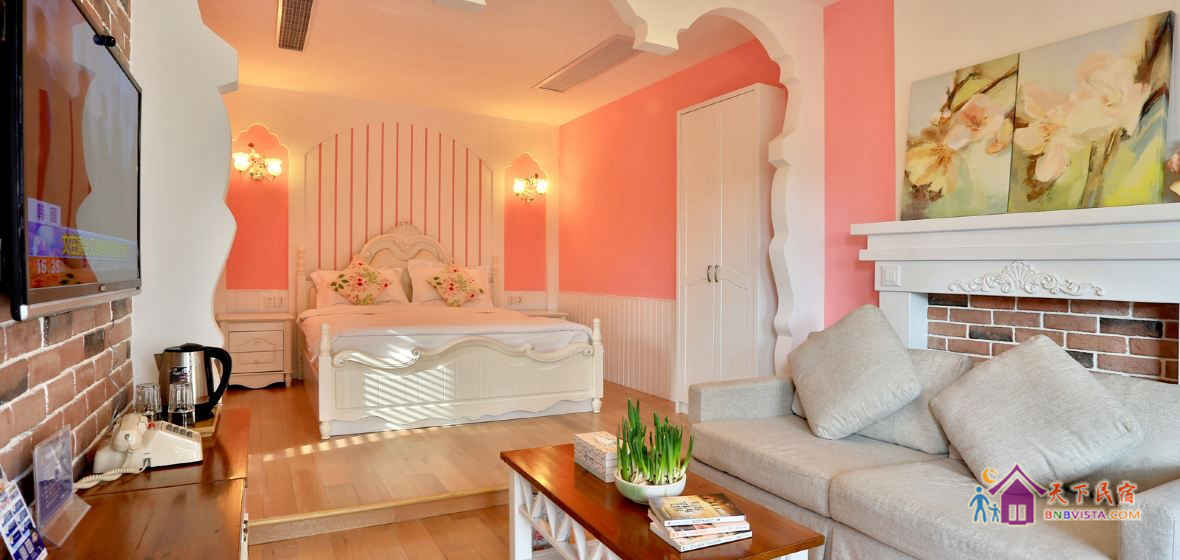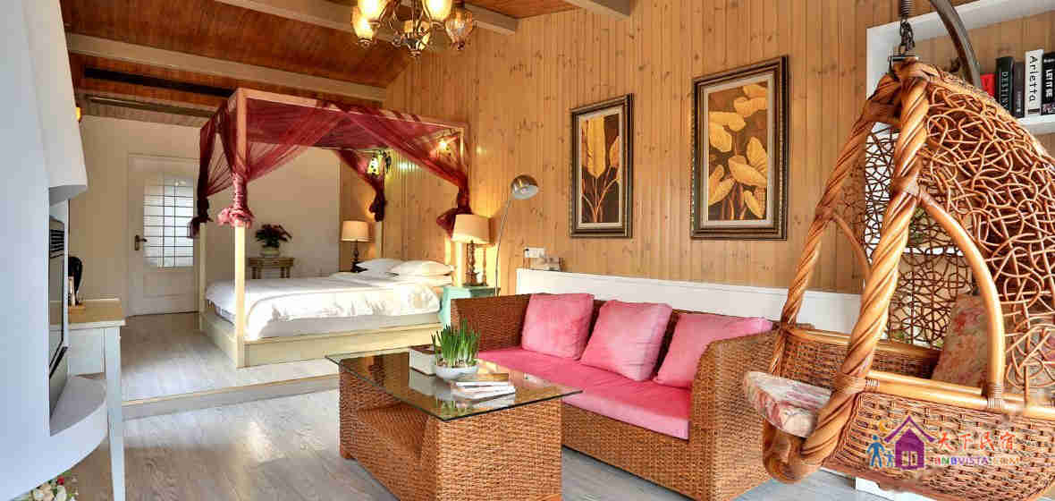 房间的内部装修风格走的是欧式混搭线路,无论是一楼的法式房间,还是二楼的美式房间,亦或是其它东南亚风格房间,以及巴洛克风格房间,它们的共同点就是--对休闲、舒适、放松的追求是极致的。副楼,被称之为“梦幻型”的四个房间值得重点提一提,这四个房间用色上非常大胆,二楼的一间叫“粉红佳人”,其主色自然是粉红,冲哥说,几乎每个人推门而入的那一瞬间,都会被漂亮到极致的房间震撼到;而隔壁一间叫“慧质蓝馨”,地中海的蓝色元素遍布角角落落;还有叫“紫韵凝心”的紫色房间,叫“闺言蜜语”的玫瑰色房间;听到这些,喜欢靓丽颜色的美女们,想不想亲自来看一看,住一住呢?
