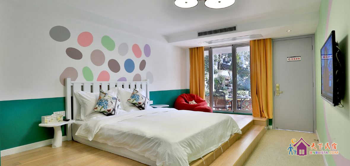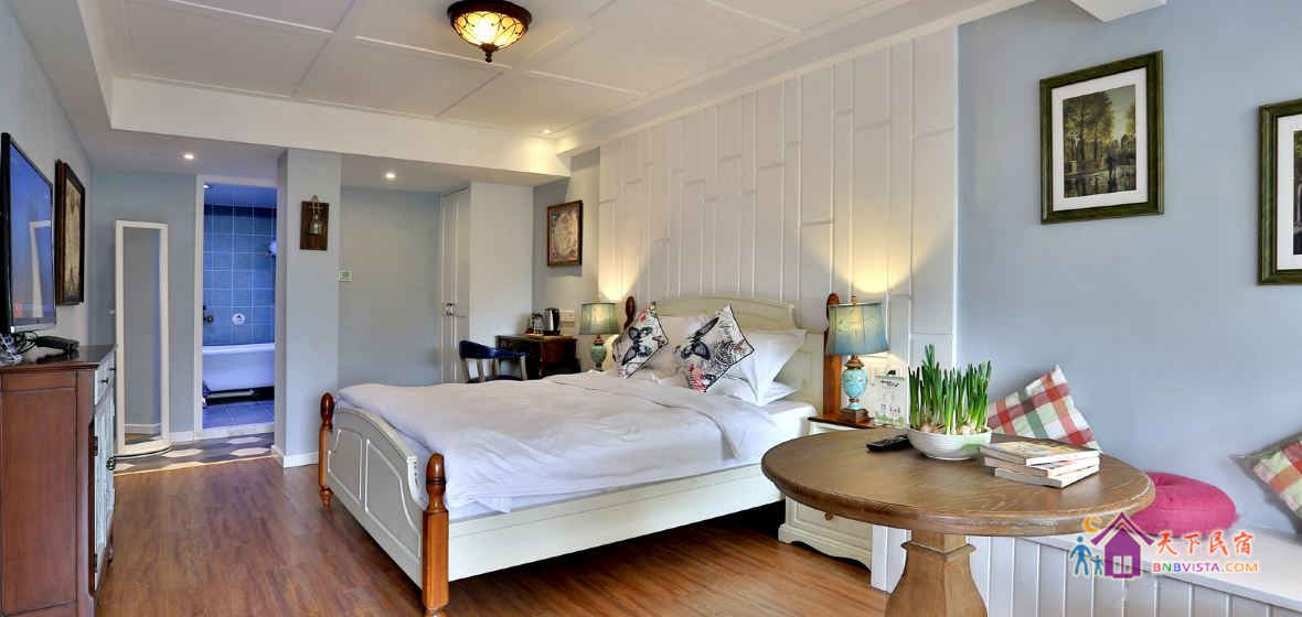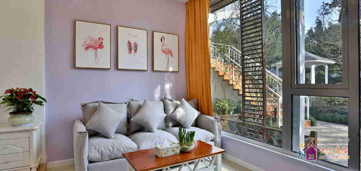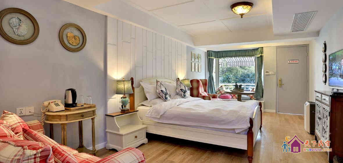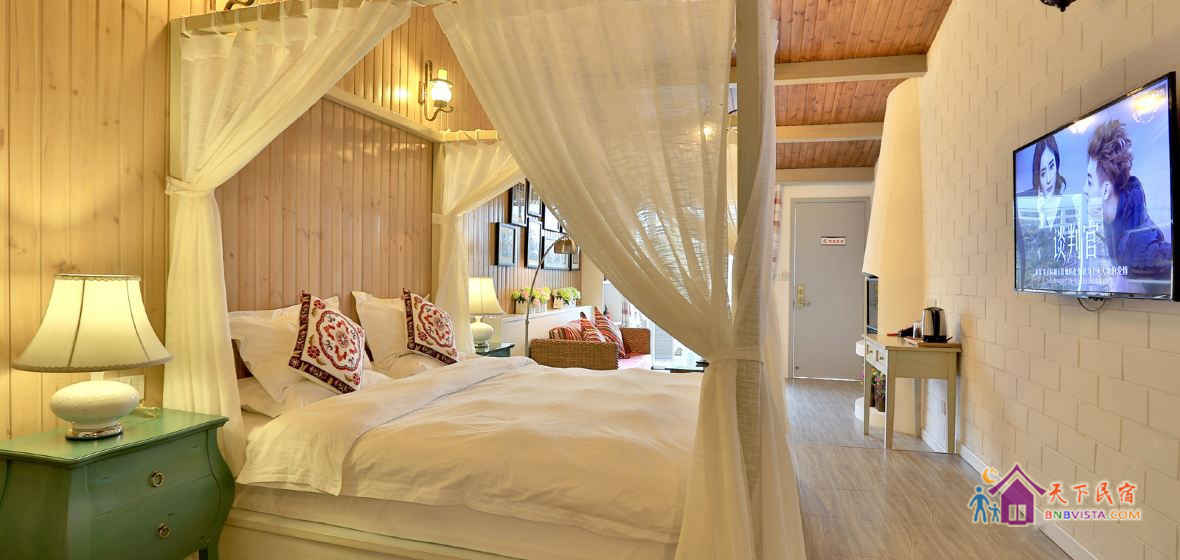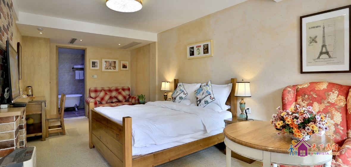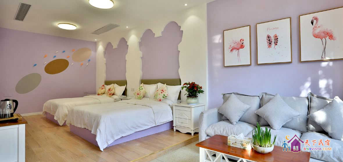 房间的内部装修风格走的是欧式混搭线路,无论是一楼的法式房间,还是二楼的美式房间,亦或是其它东南亚风格房间,以及巴洛克风格房间,它们的共同点就是--对休闲、舒适、放松的追求是极致的。副楼,被称之为“梦幻型”的四个房间值得重点提一提,这四个房间用色上非常大胆,二楼的一间叫“粉红佳人”,其主色自然是粉红,冲哥说,几乎每个人推门而入的那一瞬间,都会被漂亮到极致的房间震撼到;而隔壁一间叫“慧质蓝馨”,地中海的蓝色元素遍布角角落落;还有叫“紫韵凝心”的紫色房间,叫“闺言蜜语”的玫瑰色房间;听到这些,喜欢靓丽颜色的美女们,想不想亲自来看一看,住一住呢?