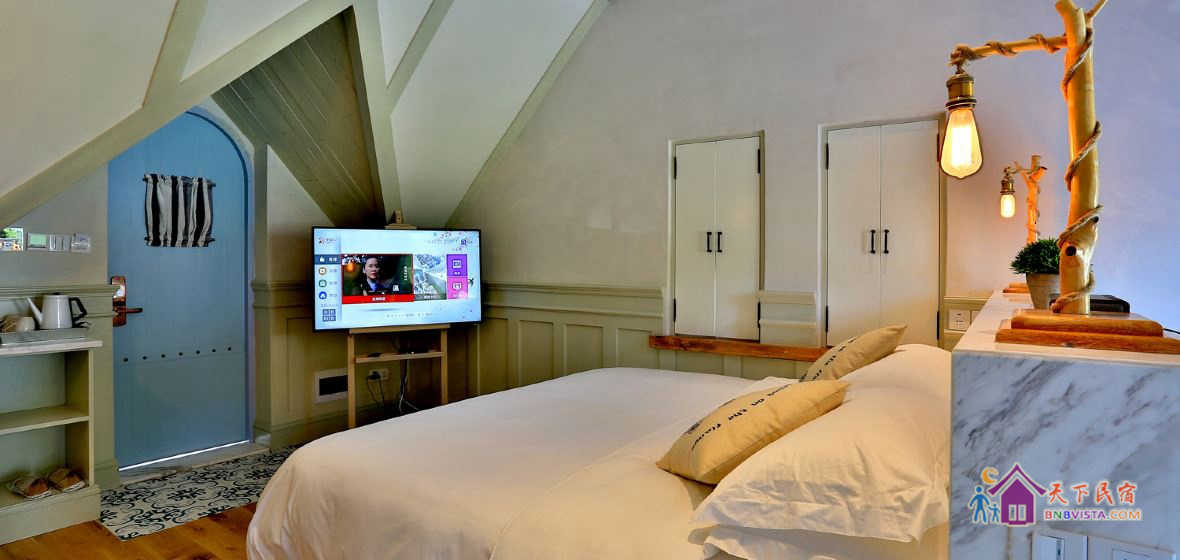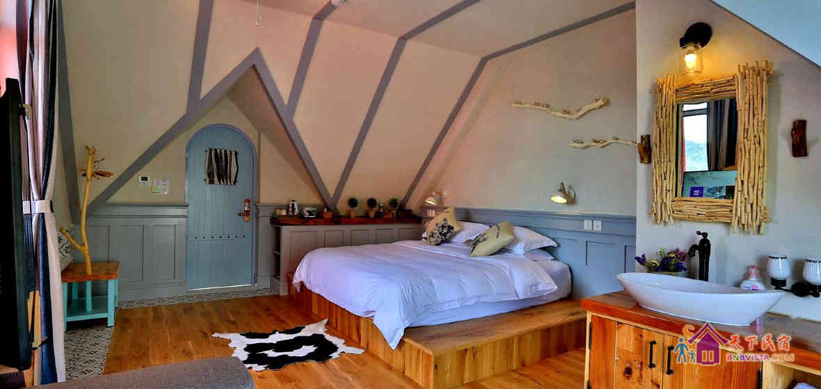 民宿拥有多种房间,全实木创意家具的打造让客房充满设计感。房内配有舒适床垫、中央空调、24小时热水供应、蓝牙音响、地暖、壁炉、高品质鹅绒、洗漱用品、松下全智能卫洗丽。