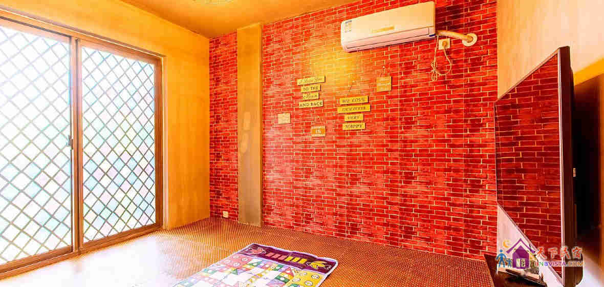 一楼附有别墅自带独立院落,被开发商毫不吝啬的前后200多平方米的优美绿化包围,景色怡人。屋内为主大厅配有120寸(高2.2米宽3.8米)巨幕高清家庭影院;欧式开放式体验厨房;餐厅厨房浑然一体(享受大家DIY合作烹饪,看的人都快流口水了吧)高档木质餐桌椅可容纳多人同时享受美味;专业KTV包房(红砖而起,黑胶唱片,星星点灯制造心动气氛,55寸平板电视,点歌机,立体环绕挂式音响,哪怕五音不全,也能震撼全场!3张1.8长的折叠沙发床,过夜人数过多的朋友们也可以直接安睡~),店长还配有民谣D型41寸吉他让大家尽情享受音乐互动的乐趣,还有一个舒心森女系幽蓝色主调的睡房(智能机顶盒+32寸平板电视);一个地中海风格洗手间。