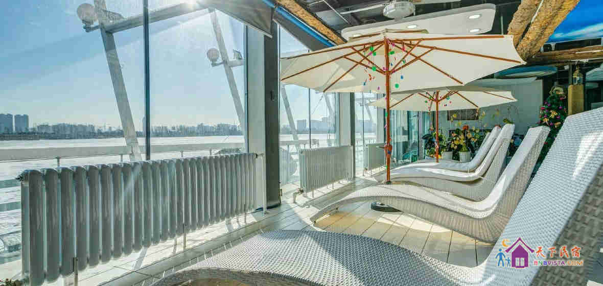 松花江独特水上别墅,斥资千万,四季都可以游玩,主体三层是一家带小型温泉休闲冰雪别墅,一楼有观江景区域,营造地中海风格,二楼有三间大床标准房间,可容纳10到20人,三楼设有用餐娱乐区,有KTV.有麻将机,自助烤串,棋牌。非一般别墅可比拟,夏季赏江景坐游船,冬季室外可以滑冰,抽冰球,冰上爬犁,冬季松花江原始冰钓。还可另外预订日式温泉,单独供暖,不用担心冬天寒冷供暖问题,绝对会让您物超所值,留下美好回忆!