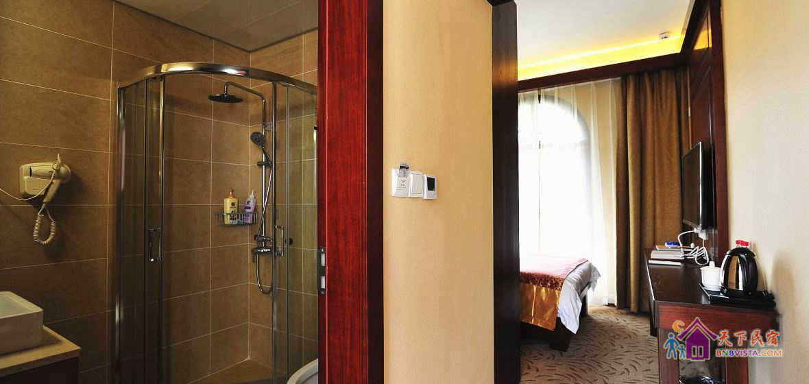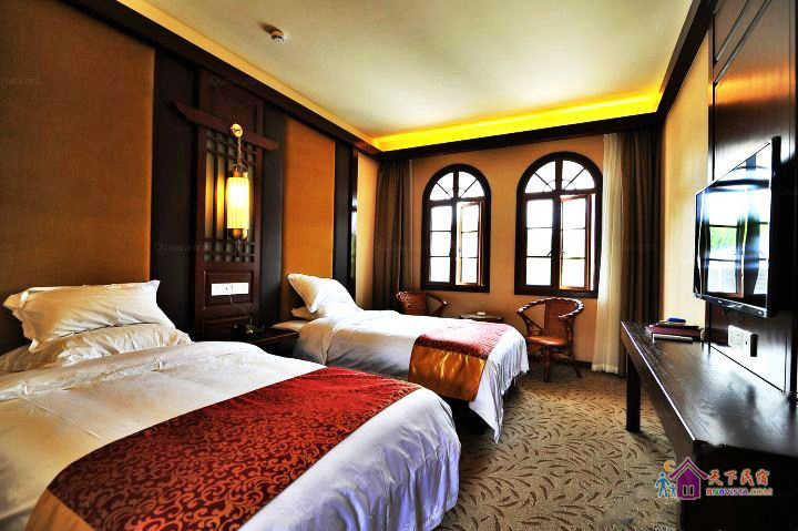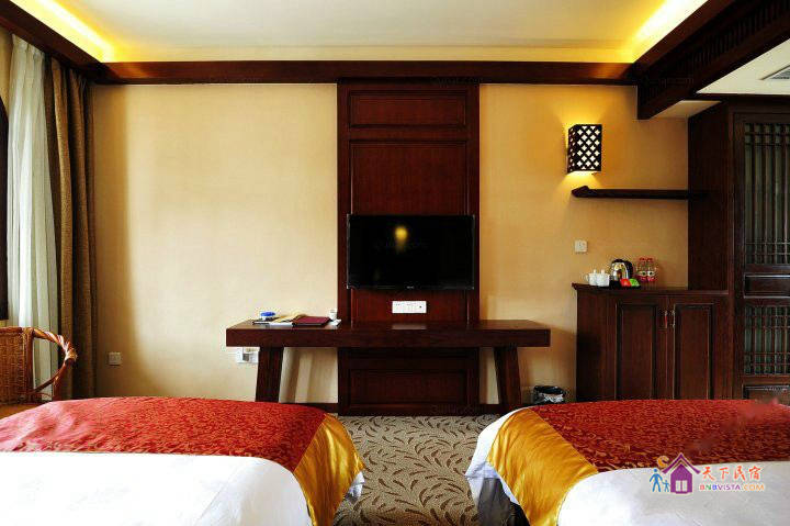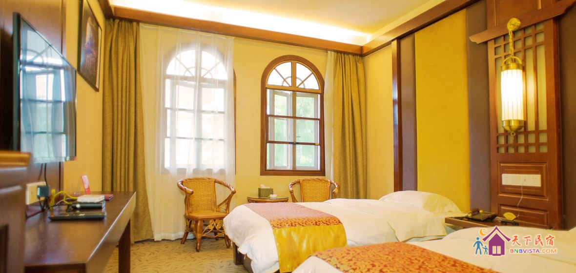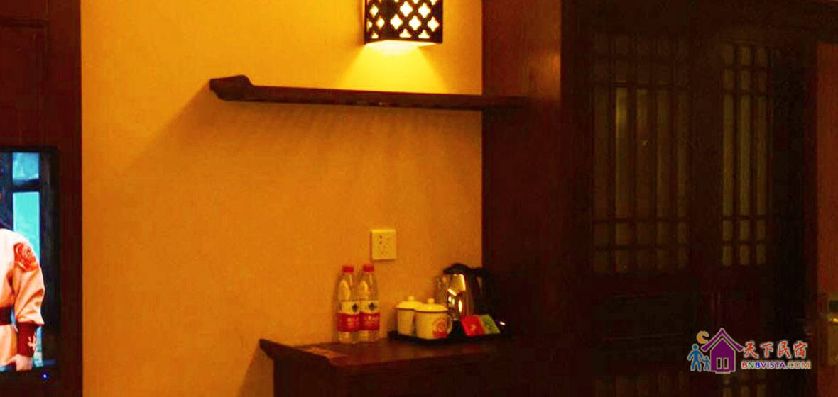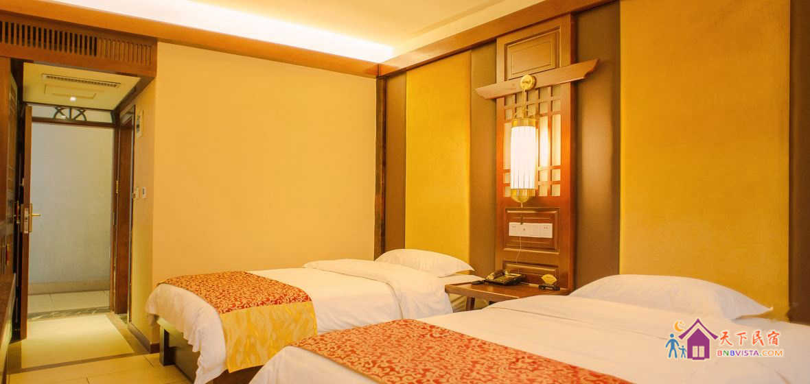 客房采用现代中式风格装修,按国家高星级酒店标准配备,营造了环境优雅、风格独特、安逸静谧的休息环境。客栈建筑面积660平方米,共有各类房型客房二十余间,投资近600万元。