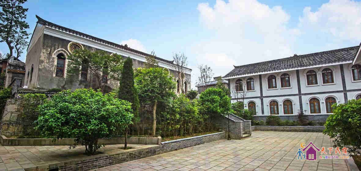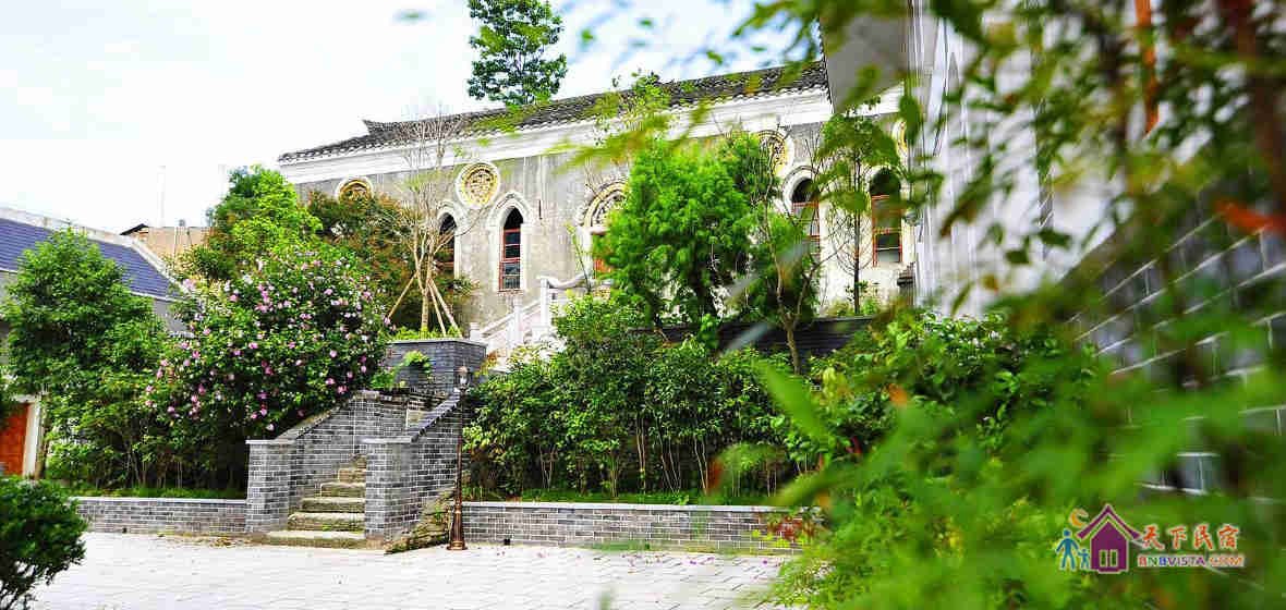 客栈利用原教友居所改建而成,在原有天主教堂建筑风格的基础上,融合了青岩古镇传统民国时期建筑特点,将古镇历史文化与西方天主教文化相互融合,既体现了古镇历史文化氛围,又突出了天主教堂的宗教色彩,是青岩古镇景区内一座中西结合的建筑物,形成了别具一格的建筑风格。
