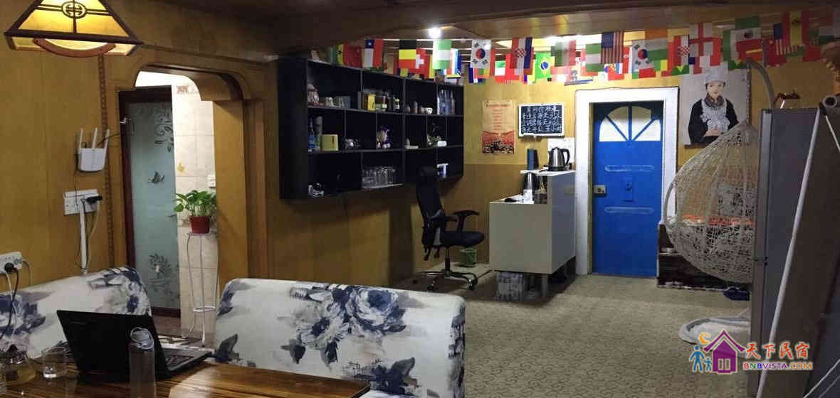 旅舍大厅典雅宽敞,有供人慵懒而坐的舒适的沙发,可以看书、聊天、听音乐、免费上网;有精美的茶具给追寻诗与远方的行者,沏一壶清茶,聊旅行的经历见闻。