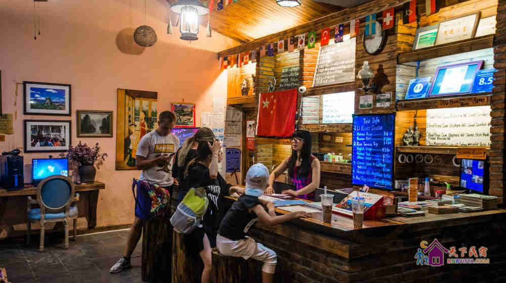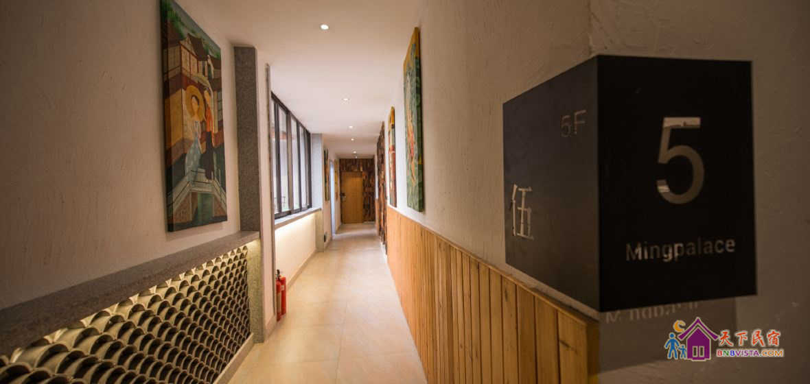 王城驿栈(桂林东西巷店)1楼采用绿色环保的木头、竹子与红砖构建出古香古色的大厅,共有150平方米的公共休闲空间,咖啡间、酒吧、书吧集聚一堂。因主人是画家出身,旅舍内各式各样温馨舒适的房间都是由其亲自设计与精心布置,艺术风格兼具时尚与古典之美。旅舍从大厅到走廊和房间都挂有原创画作,浓浓的艺术气息扑面而来,犹如行走与居住在艺术殿堂一般。放眼往窗外望去,今朝古老王城面貌尽收眼底。
