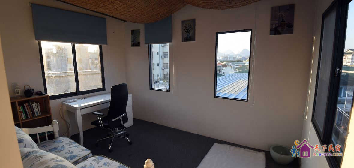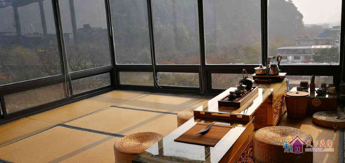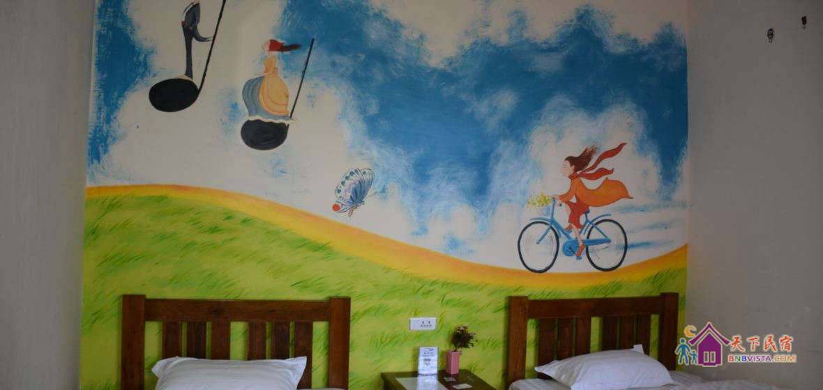 客栈每个房间都是一个词牌名。创始人专门请文学评论家朋友已向全国诗人和文学爱好者,征集以七个房间词牌为题的现代诗。入住后,如果你也有写诗的冲动和灵感,不妨写下来,说不定可以拿个奖呢。活动结束,客栈创始人还要出一本诗集。客栈房间的墙绘均选自吴冠中的作品。另外,桂林花桥美术馆就在客栈附近。喜欢画画的朋友,还可以参观高品质的画展。