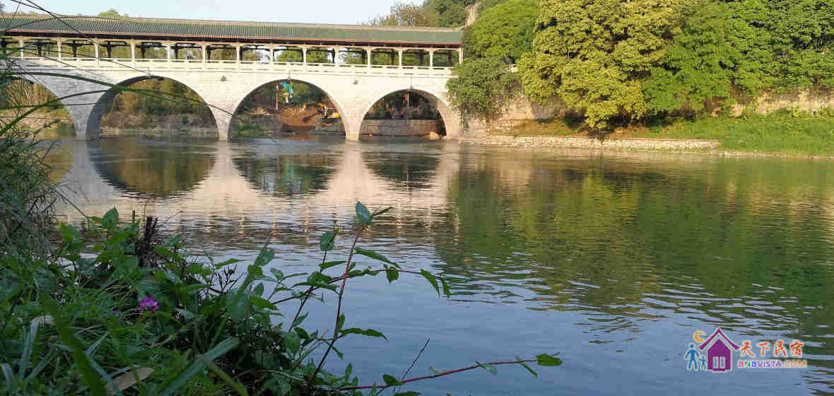 客栈江景房推窗可见公园的著名景点“花桥虹影”,著名作家白先勇的小说《花桥荣记》取材于此。因“花桥”始建于宋朝嘉熙年间,客栈因此而得名。据说,当年克林顿总统访问桂林时曾设想克林顿的车队,从花桥的风雨廊穿过,因专家为保护花桥反对,改走其他门。抗战期间,戏剧家、著名诗人田汉在桂林期间的寓所就在七星公园月牙楼前。园内的桂海碑林宋碑130多方,著名的《元党籍》碑是国内现存唯一完整的一块。