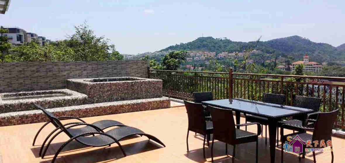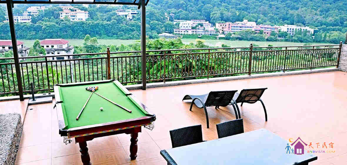 广州从化富力泉贵宾度假别墅位于半山的别墅,可观一线流溪河景。高大上的中空大厅,带吧台的温馨餐厅,二楼还有个公共休闲厅,还有KTV、棋牌室、桌球室,花园内有两个温泉池,和一个游泳池。别墅内有家电厨具齐备的DlY厨房,无油烟电烧烤盘,可以在一楼的观景大露台烧烤。别墅的配置适合家庭出游,同学聚会、团体活动。