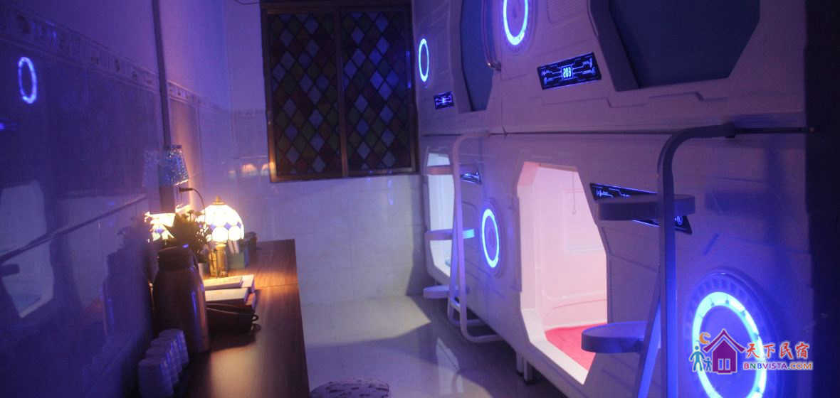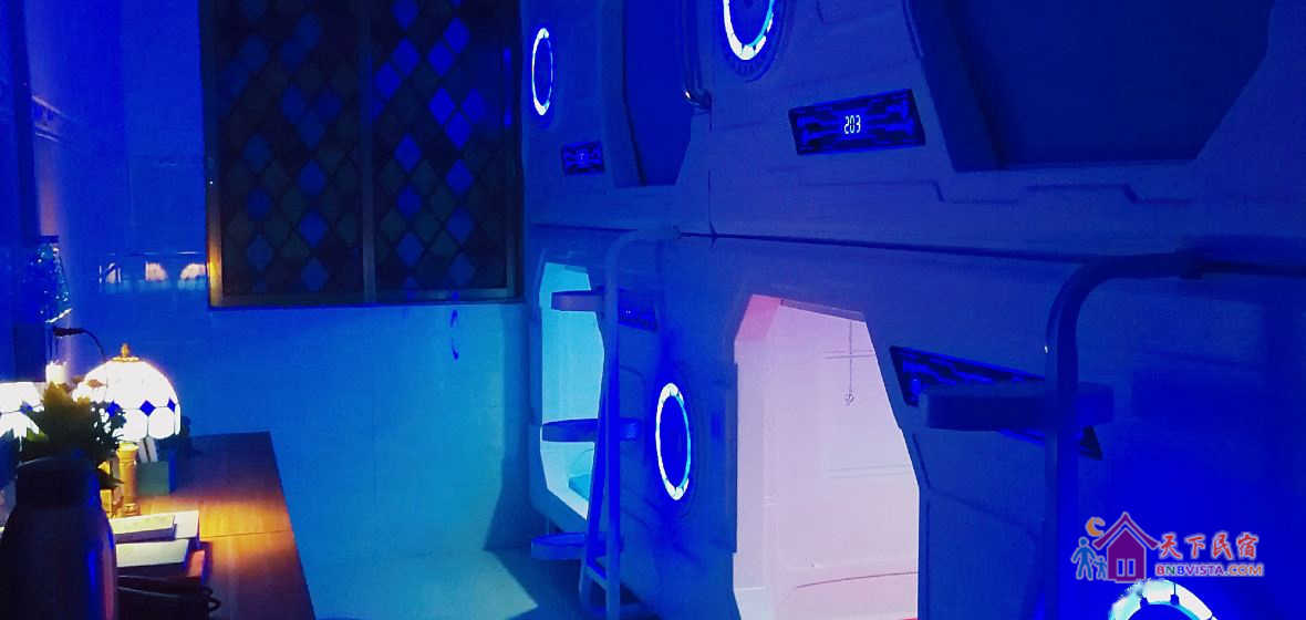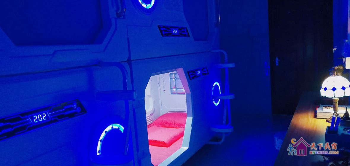 - 所有房型: 初遇四人女生房(床位),有你时光舒适双床房,在路上六人男生房(床位),那片海舒适大床房,岁月静好舒适大床房,芳华独卫女生四人房,那些年男生四人房,梦幻星空高级太空舱女生房,探索高级太空舱男生房
