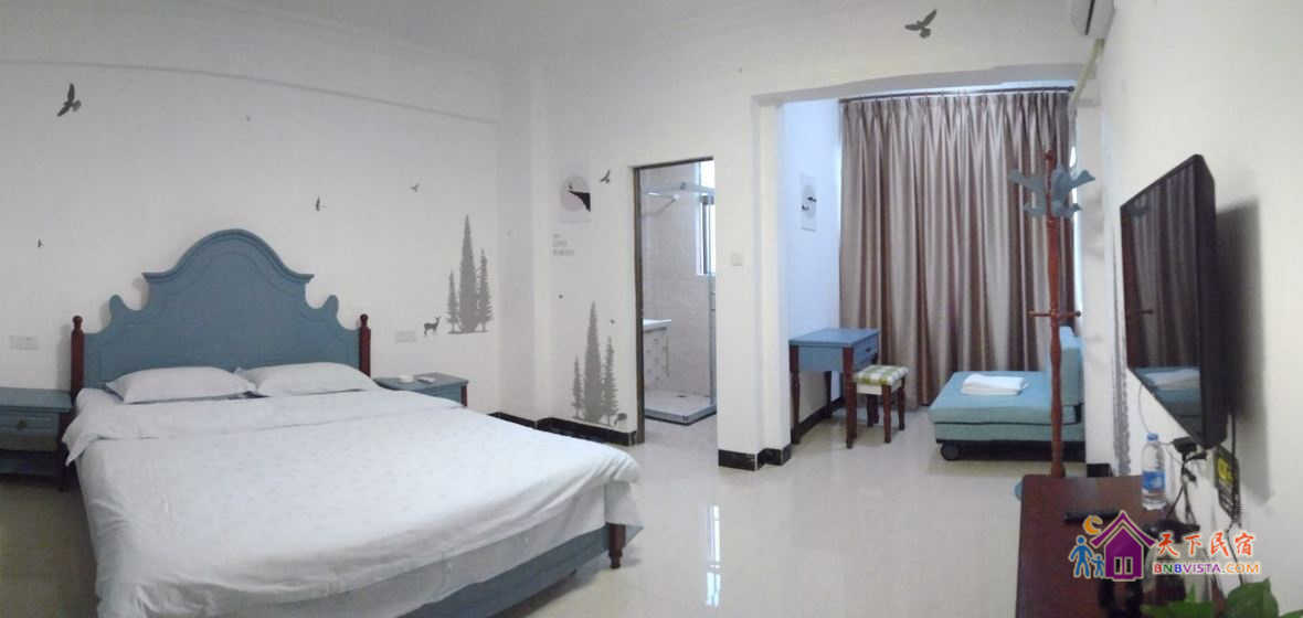 整个客栈含有不同风格设计的房间:有北欧风的、蓝色海洋的、温馨甜蜜的、浪漫的、大床房,也有励志的单人房、舒适的双人房、三人房等。