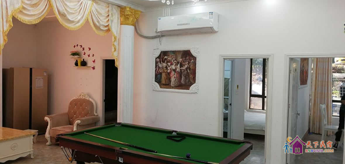 别墅位于白云区涉外学院,园林式别墅区环境,可24小时通宵没有限制,让您尽情享受聚会。包含轰趴大厅、自助厨房和餐厅,有KTV、桌球、乒乓球、WIFI和55寸大电视,是绝佳的娱乐休闲区,该主题属于城堡别墅的精华部分电梯首层。