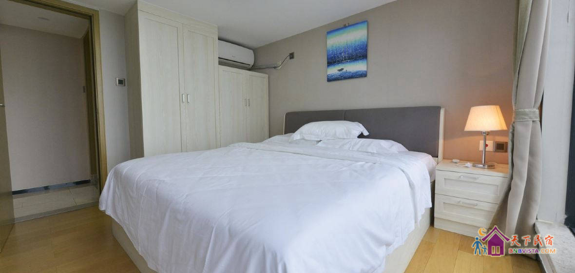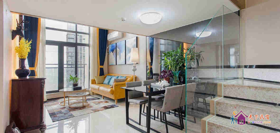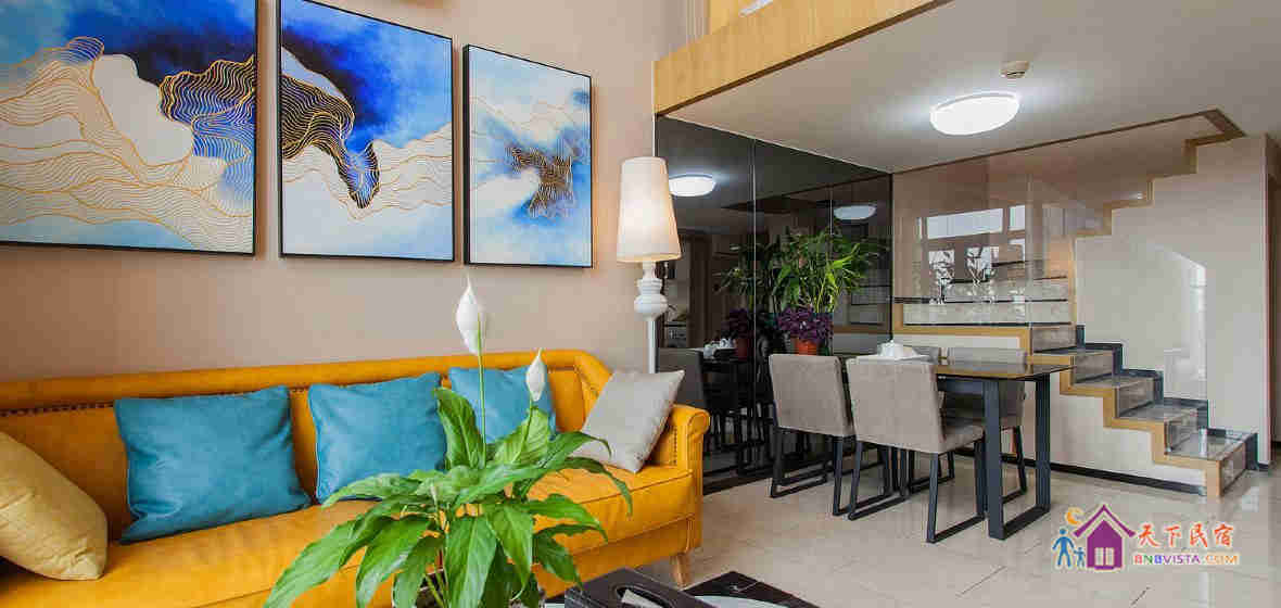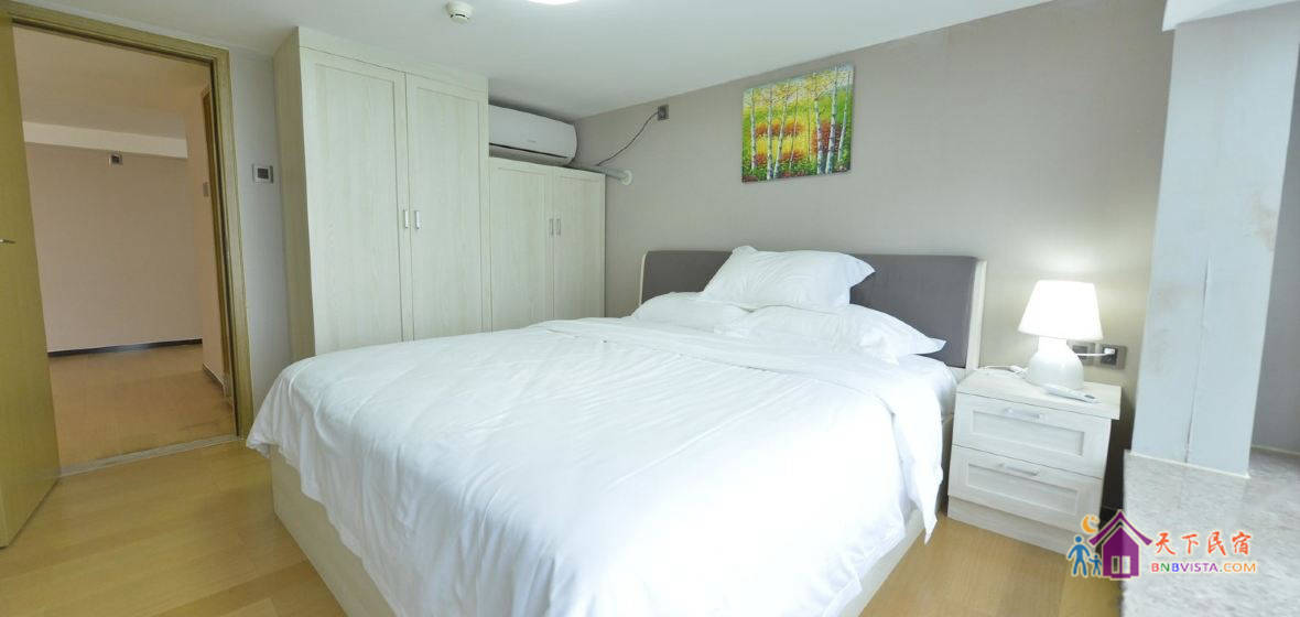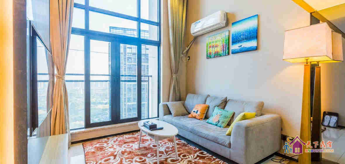 因为层高4.5米,相当于普通住宅的30楼。正东南向,座向视野、通风采光极好,非低层单面房间可比。室内为复式双层结构,一楼有客厅和厨房,上下两层分别有独立的房间和卫生间,可以同时入住两家人。二楼平台还有双人沙发床备用。公寓的主要特点是设备新,床品好,专人打理,干净整洁。房东本来打算自住,因此投入较大。两个床垫均为高价的慕思品牌,为远道而来的贵客提供优质的睡眠提供了保障。房间照片均为业主本人拍摄,不求花俏的包装,只求提供最好的服务。