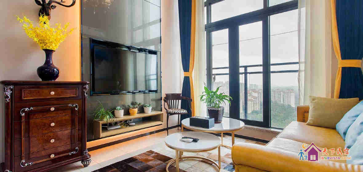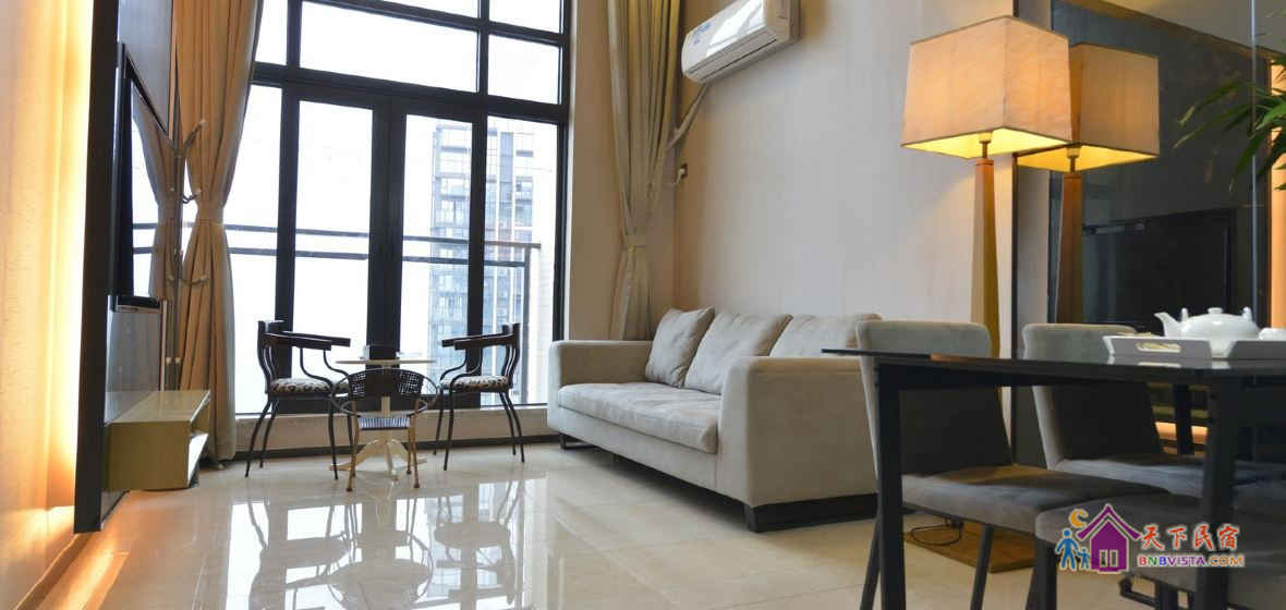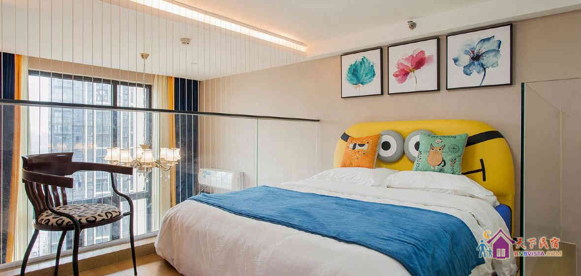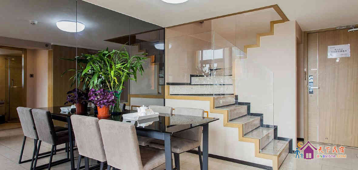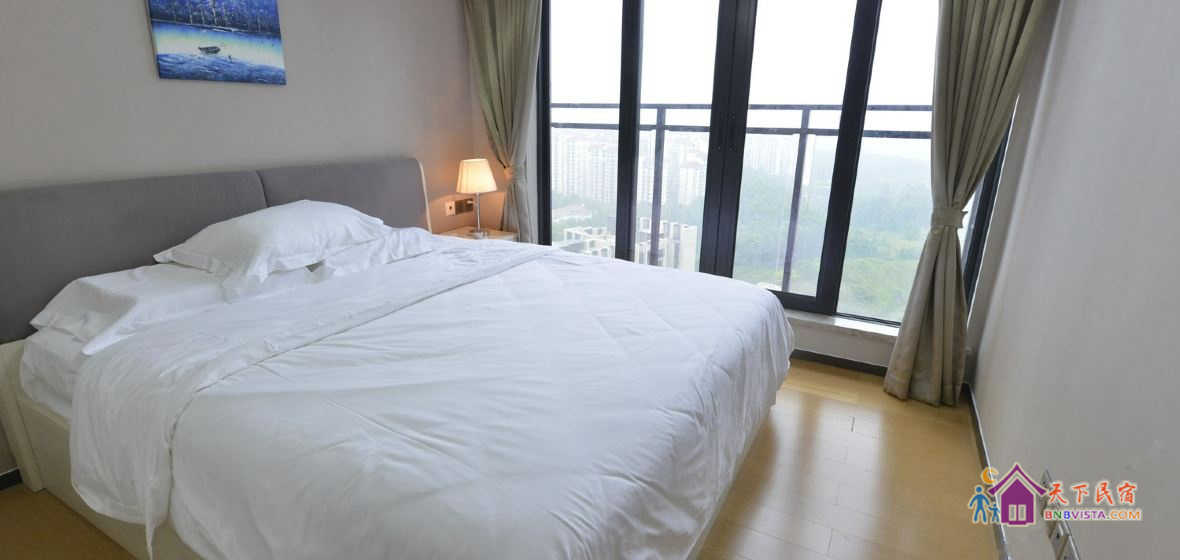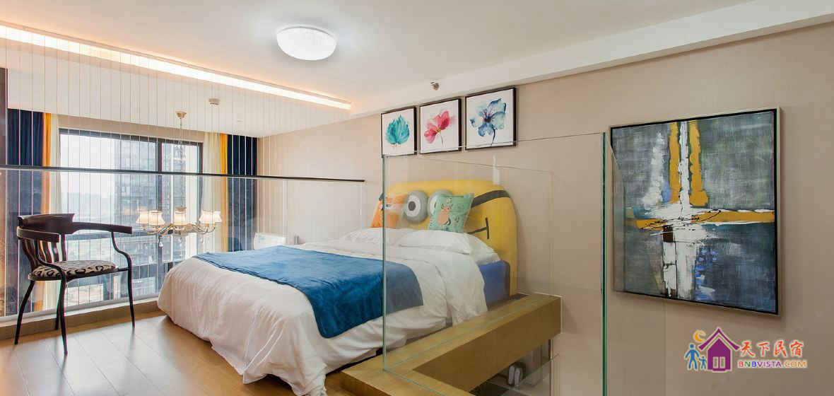 因为层高4.5米,相当于普通住宅的30楼。正东南向,座向视野、通风采光极好,非低层单面房间可比。室内为复式双层结构,一楼有客厅和厨房,上下两层分别有独立的房间和卫生间,可以同时入住两家人。二楼平台还有双人沙发床备用。公寓的主要特点是设备新,床品好,专人打理,干净整洁。房东本来打算自住,因此投入较大。两个床垫均为高价的慕思品牌,为远道而来的贵客提供优质的睡眠提供了保障。房间照片均为业主本人拍摄,不求花俏的包装,只求提供最好的服务。