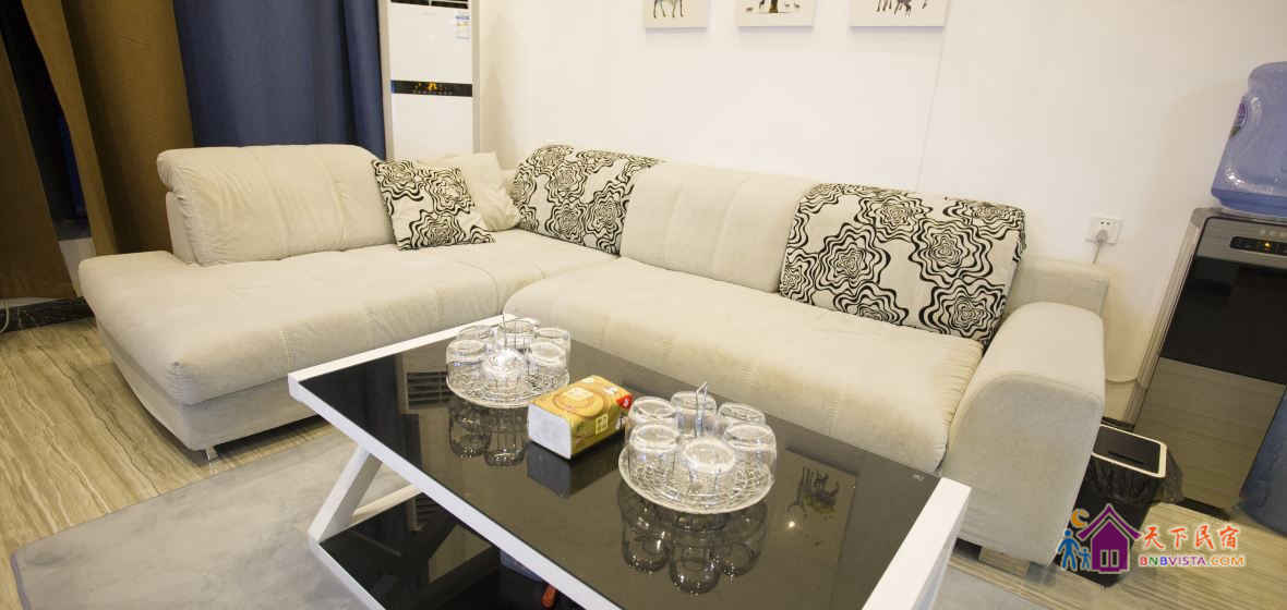 旅舍客房干净整洁,提供49寸智能电视、冰箱、洗衣机、空调、厨房、体脂称。这里还配有无线wifi、咖啡桌、书房、休闲娱乐厅、游泳池、乒乓球等健身场所提升休闲娱乐体验。
