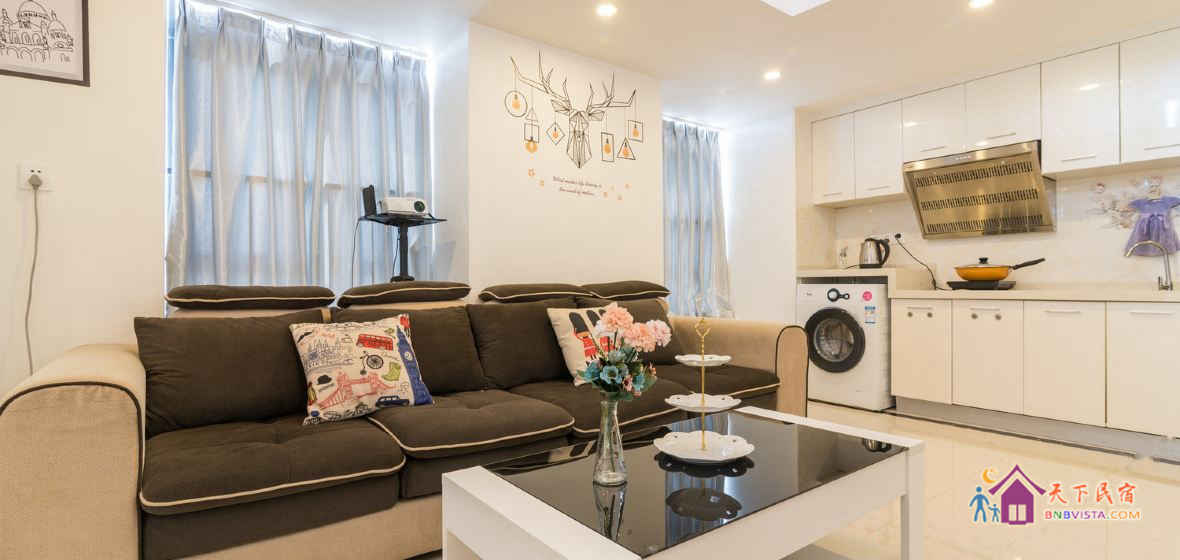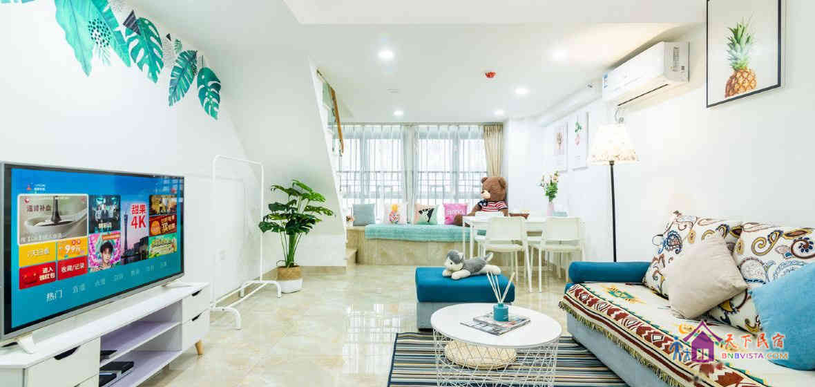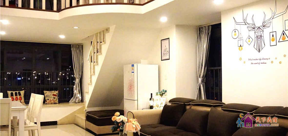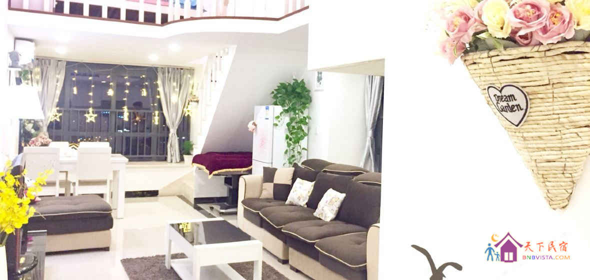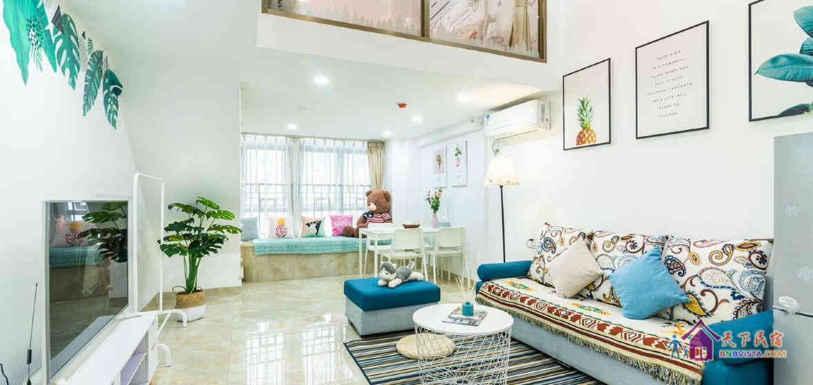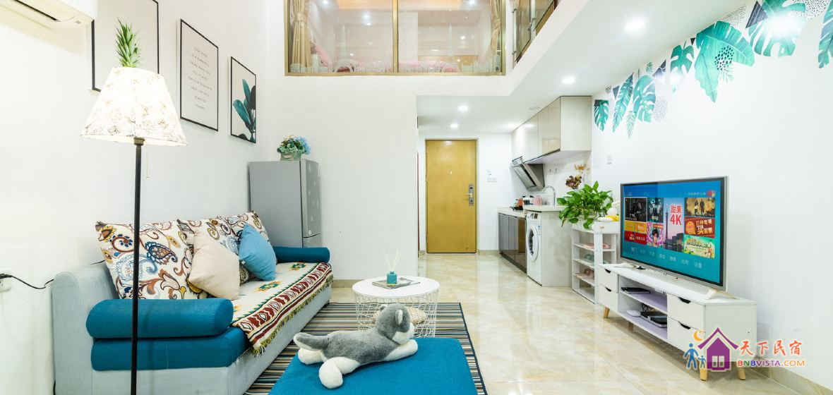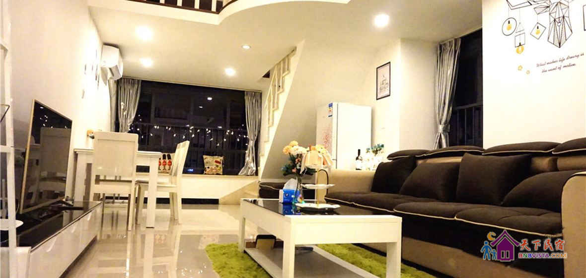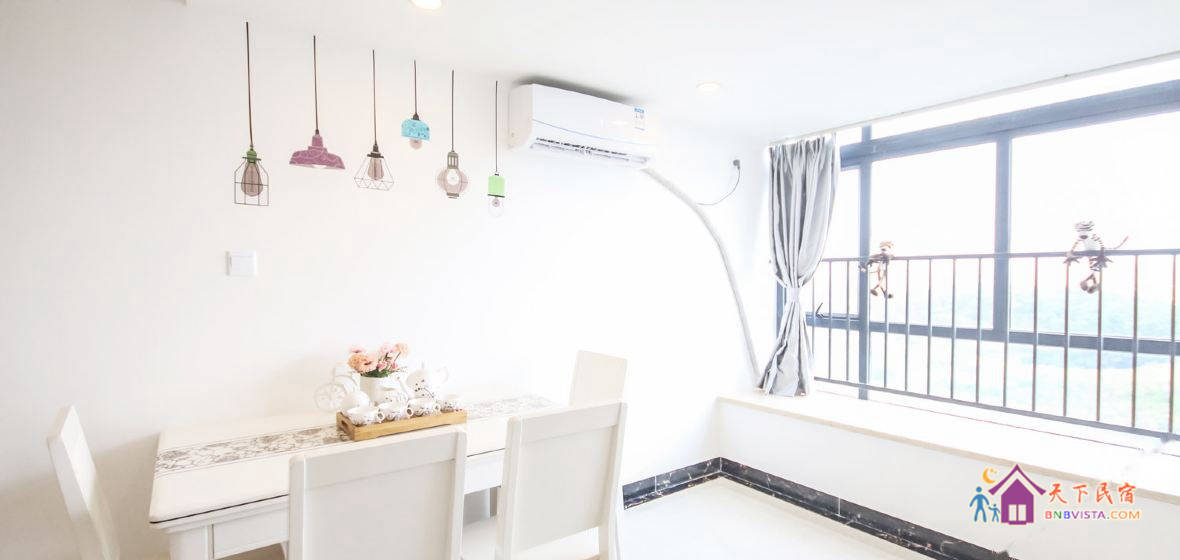 长隆欢乐世界景区,全新装修,北欧风格、现代温馨浪漫的小公寓,位于广州地铁三号线和七号线的交汇处,地理位置十分优越,距离汉溪长隆地铁站200米,地铁直达琶洲展馆,珠江新城,广州南站等!个性复式两房,六大飘窗,有一流的采光及通风!全新升级,客厅提供具幕投影仪,打造属于您的私人影院!开放式厨房,可以随意烹饪美食!情侣度假、同学聚会、家人朋友出行首选!