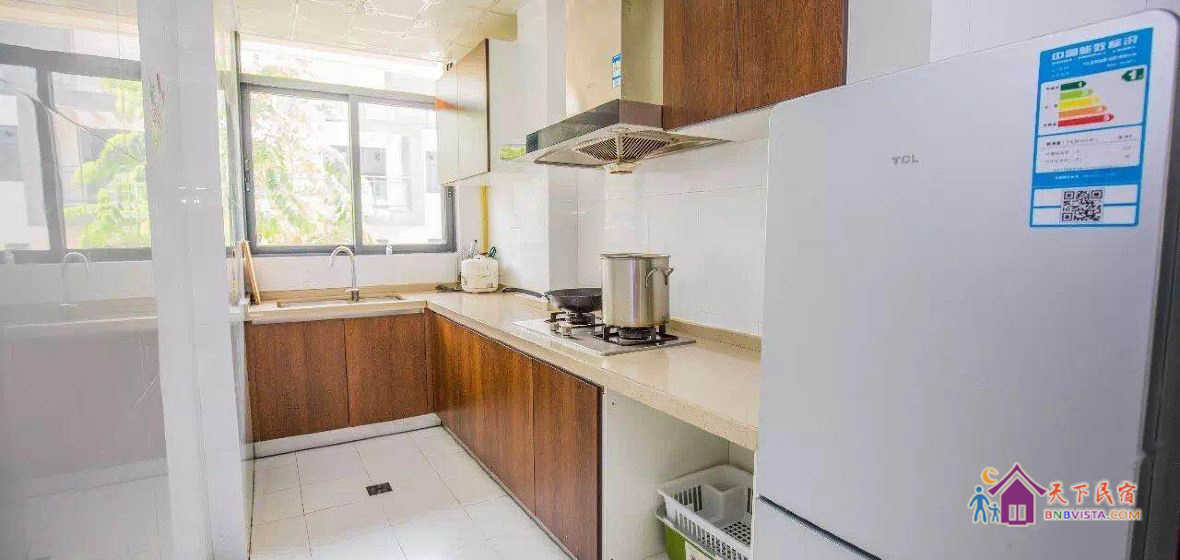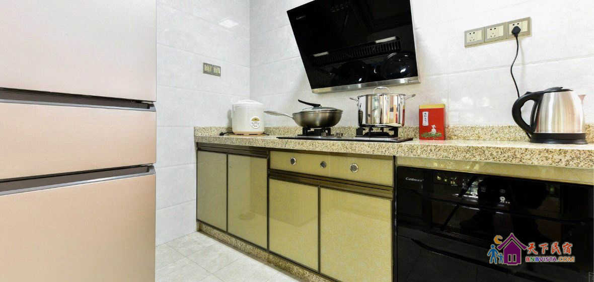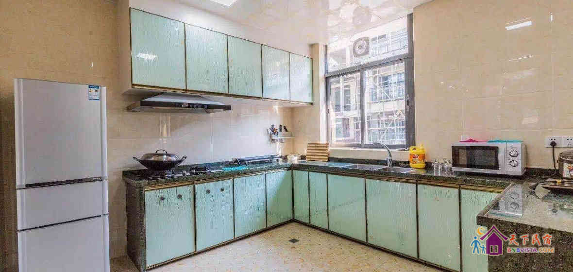 1,厨房(电饭煲/个、电磁炉/个、微波炉/个、冰箱,通煤气可做饭,食物、调味料碗筷需自备,厨具齐全)