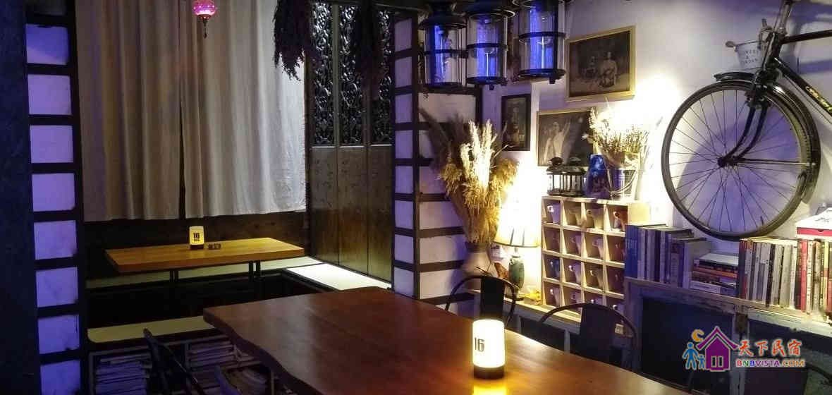 屋主是一位艺术家和设计师,平时工作和生活在这里,喜欢收藏老家具,所以在工作室里你会看到有各个时期的老缝纫机,打字机唱片机,老屏风等,有喜欢艺术的朋友也可以在这聊天,交流艺术,听听音乐,听听别人的故事。