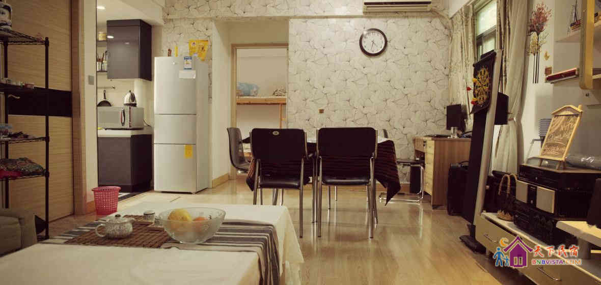 旅舍装修精美,拥有温馨舒适的客房及艺术交流大厅。旅舍内配有空调、无线宽带、公用电脑、洗衣机、自助厨房、旅游咨询、图书阅览等。这里有热情的服务,有一群志同道合的朋友,自在的氛围是您求职入住、休闲旅行的温馨家园。