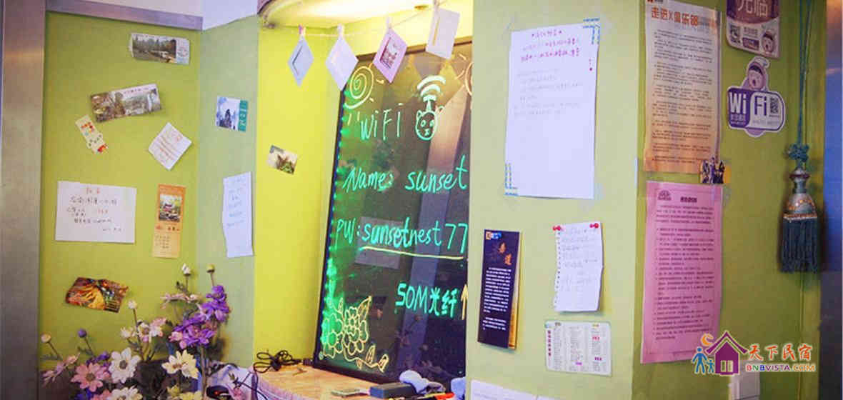 旅舍环境具有小资情调,客房布置温馨、整洁,房内提供24小时热水、无线WIFI等,为你提供舒适、便捷的住宿环境。