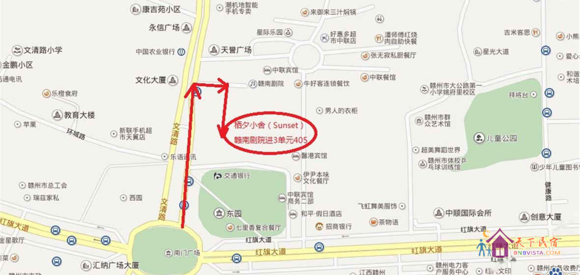 赣州栖夕小舍国际青年旅舍地处章贡区文清路,旅舍楼下就是南门口步行街、美食街。