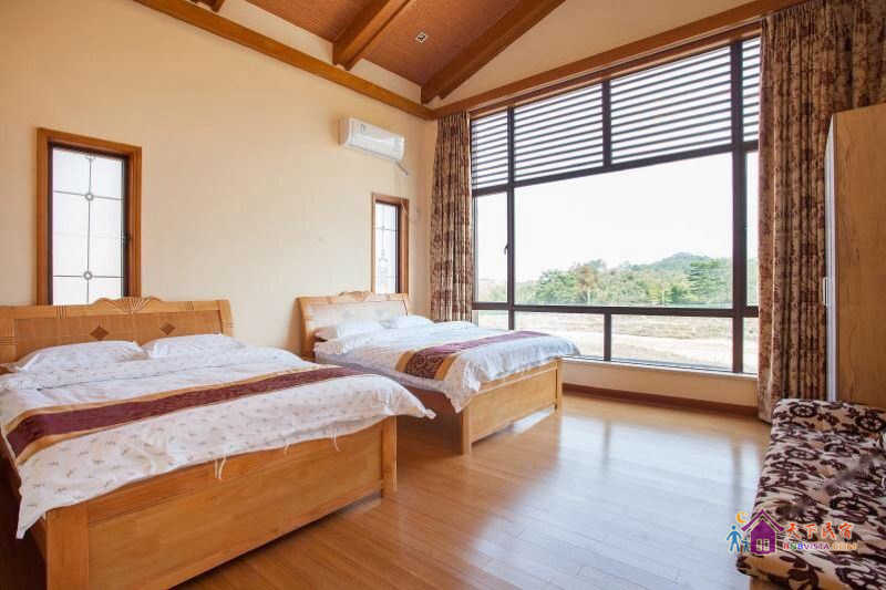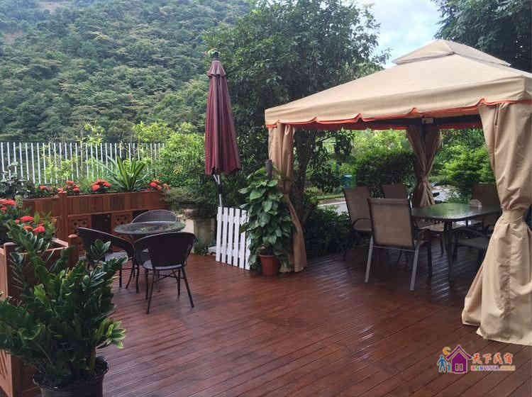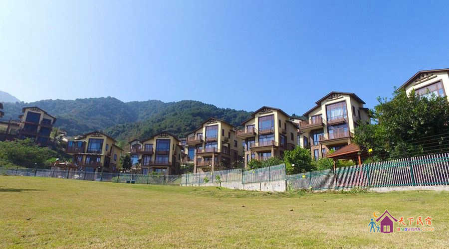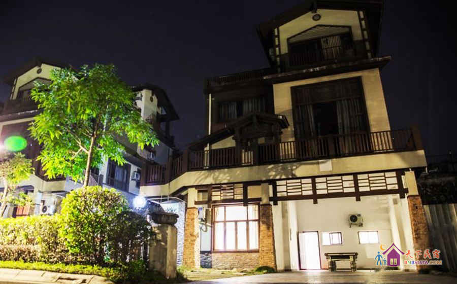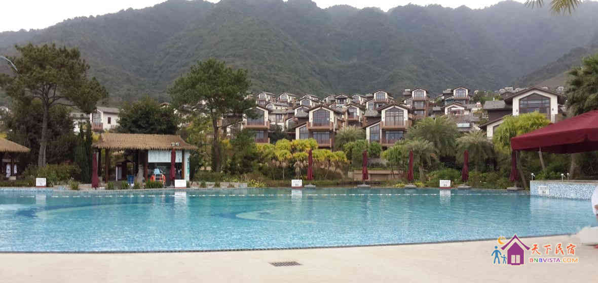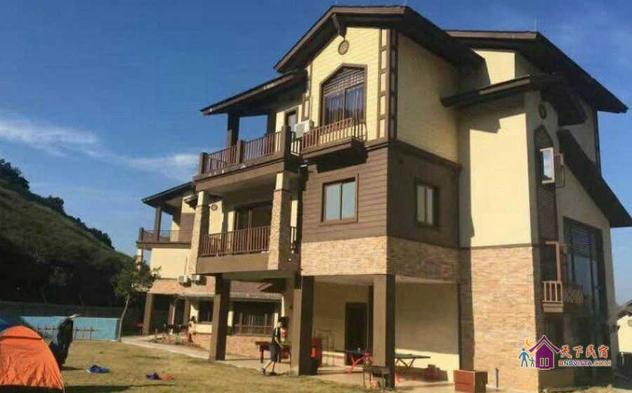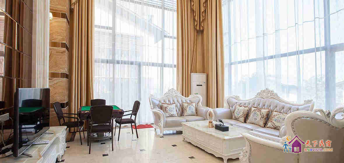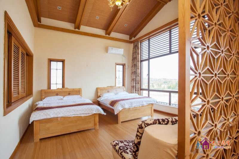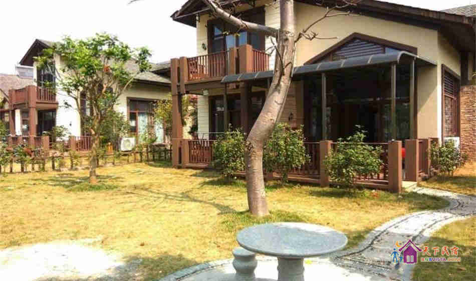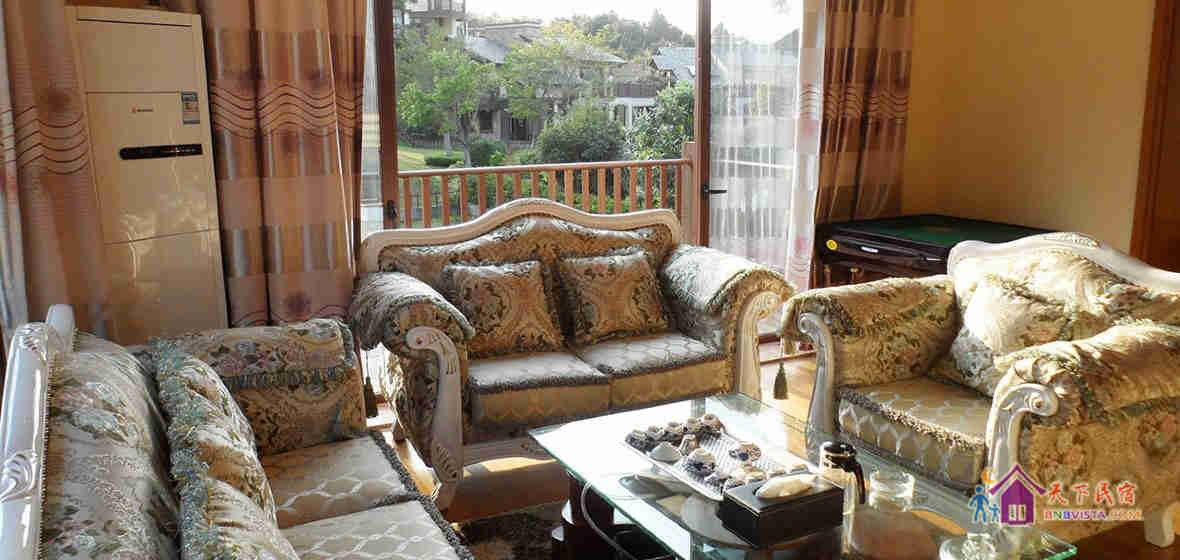 别墅后花园设有免费的草坪羽毛球场、乒乓球台、烧烤炉,厨房免费使用(电饭煲、电磁炉、微波炉、不粘炒锅、冰箱、消毒柜等设备齐全)。别墅类型为独栋别墅,视野开阔(客厅与其他别墅相距约100米远),四层建筑面积300平米,花园面积近500平米,别墅四周群山环抱、潺潺溪水环绕、景色优美。
