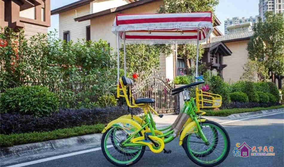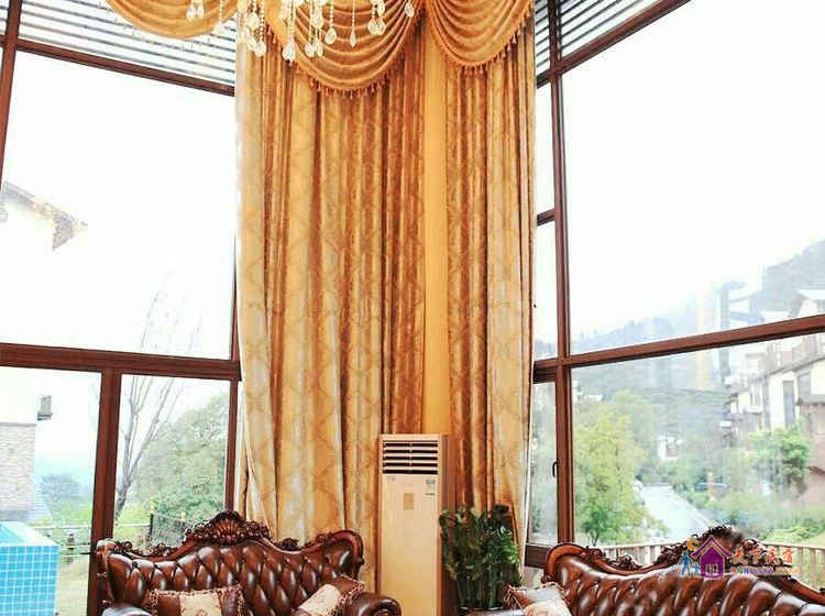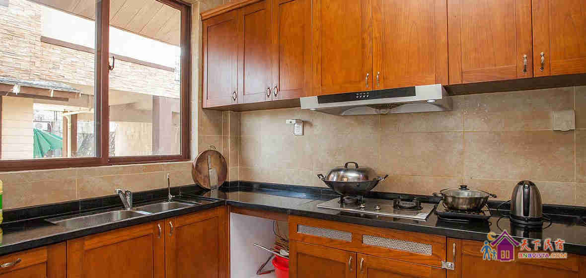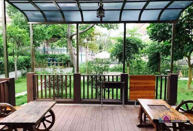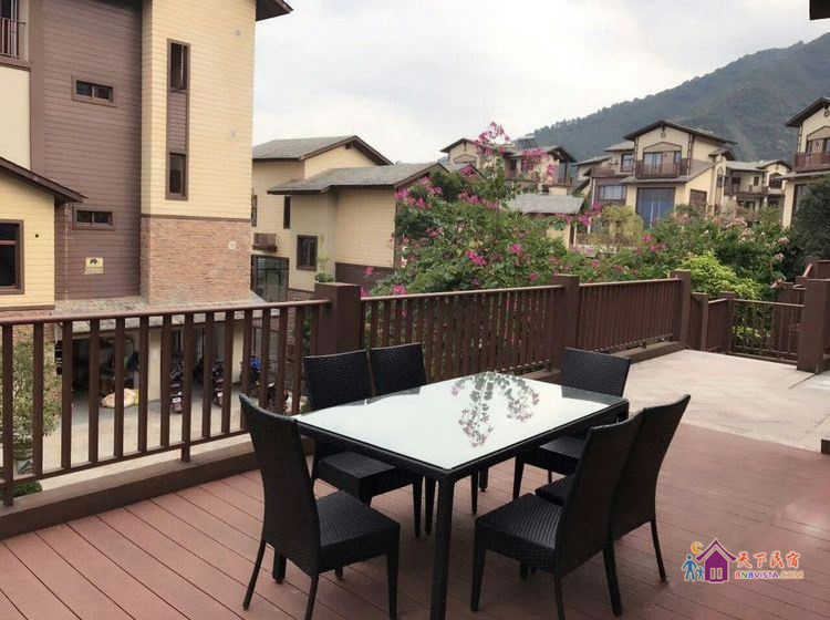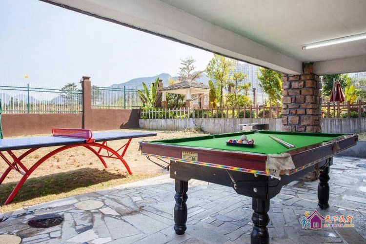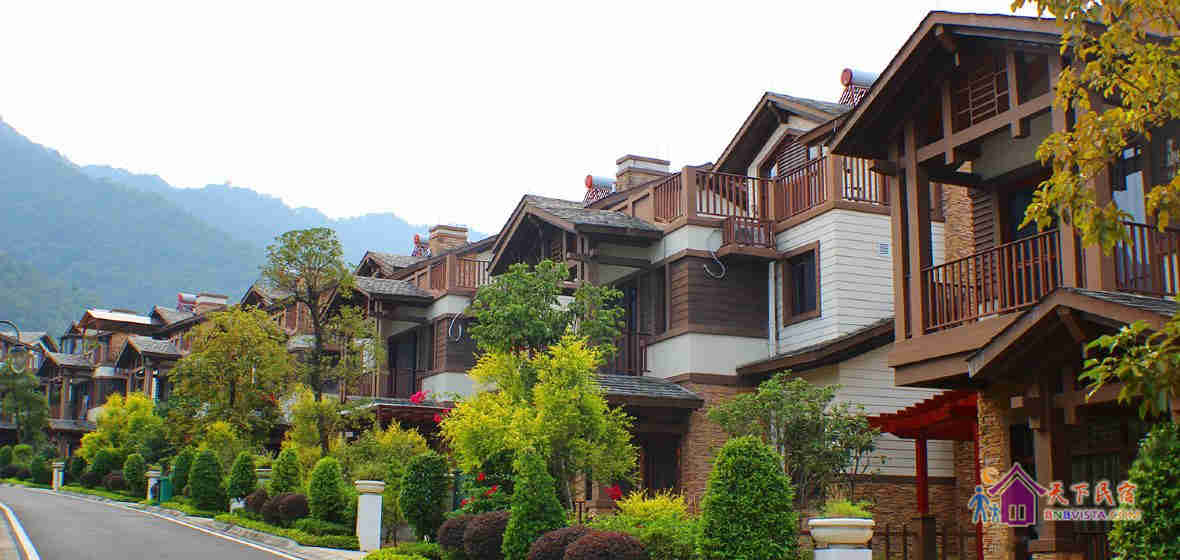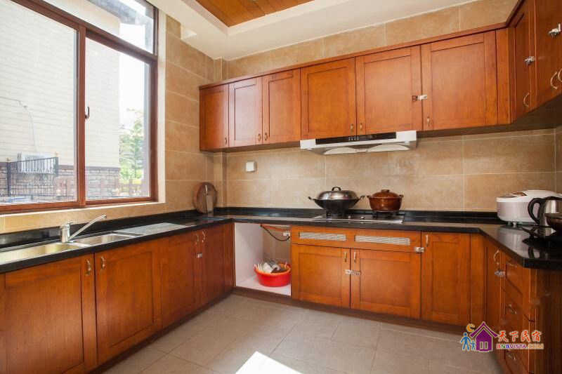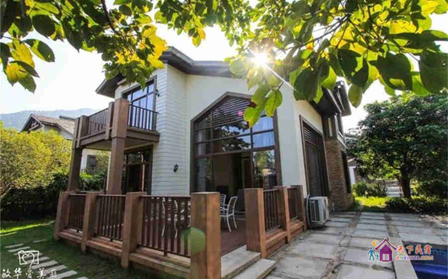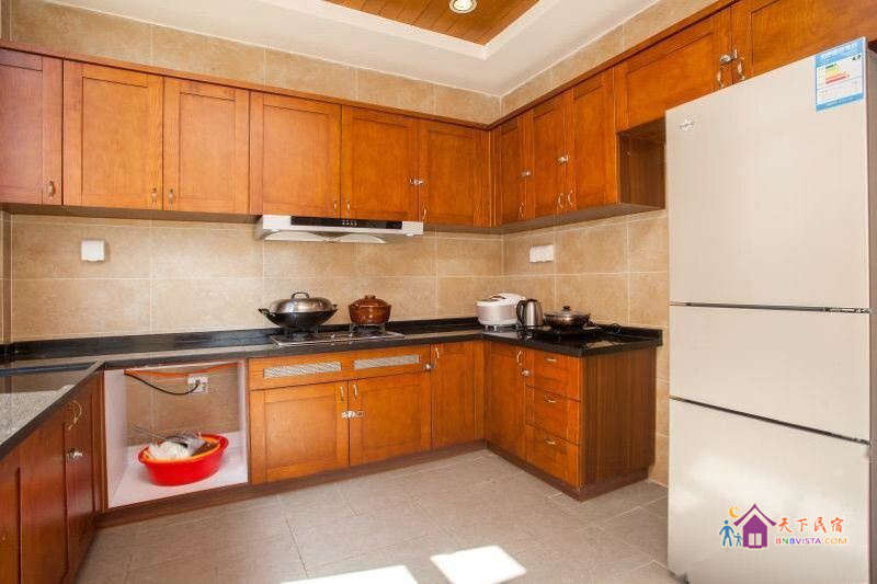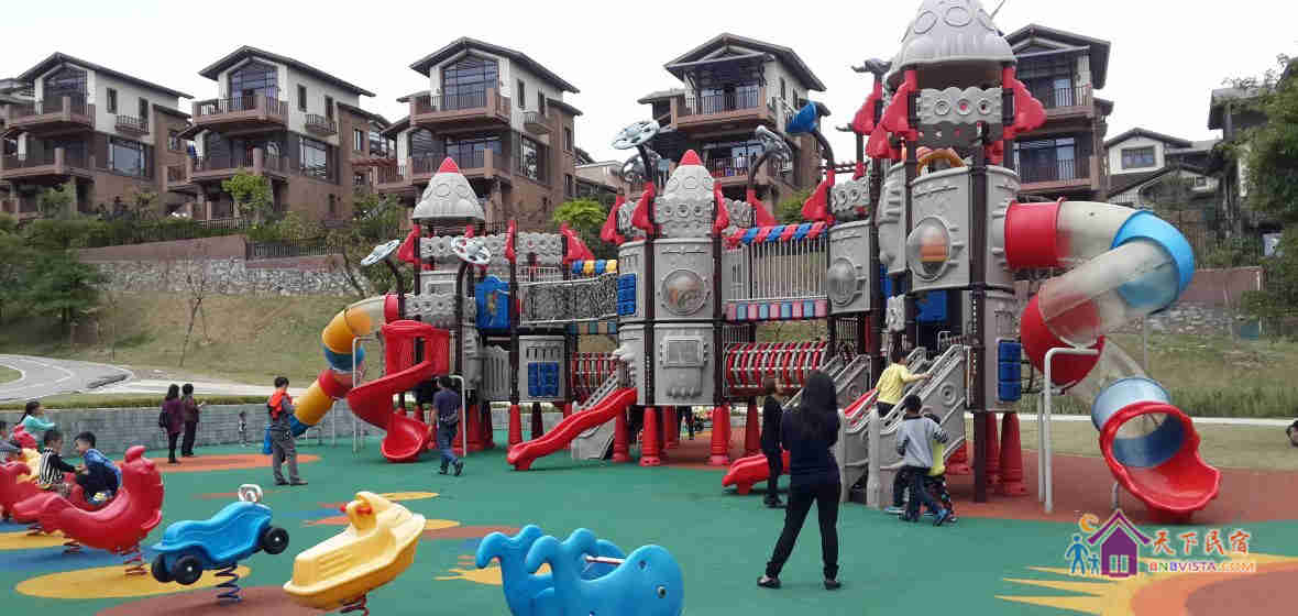 别墅后花园设有免费的草坪羽毛球场、乒乓球台、烧烤炉,厨房免费使用(电饭煲、电磁炉、微波炉、不粘炒锅、冰箱、消毒柜等设备齐全)。别墅类型为独栋别墅,视野开阔(客厅与其他别墅相距约100米远),四层建筑面积300平米,花园面积近500平米,别墅四周群山环抱、潺潺溪水环绕、景色优美。