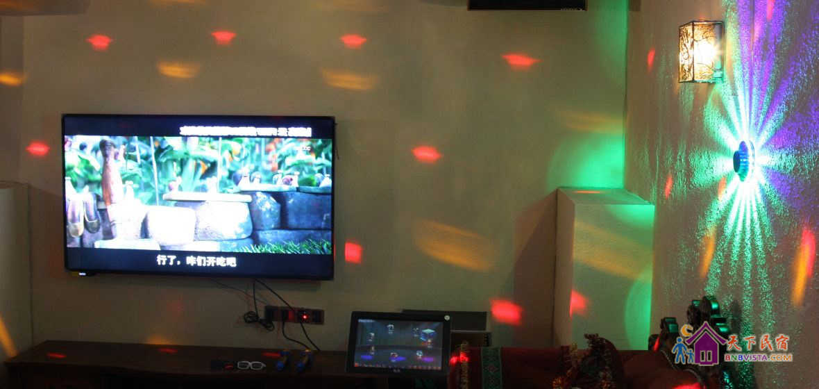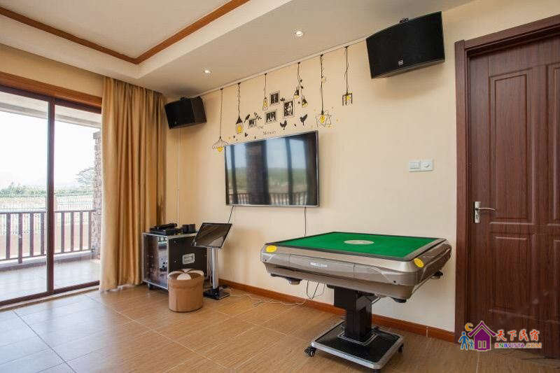 别墅室内设有免费的KTV影视厅(开放时间是:9:00-11:30、14:00-23:30)、乐视网络电影、微软XBOX ONE体感游戏机、电动麻将机、足球机、笔记本电脑、电动投影幕布。