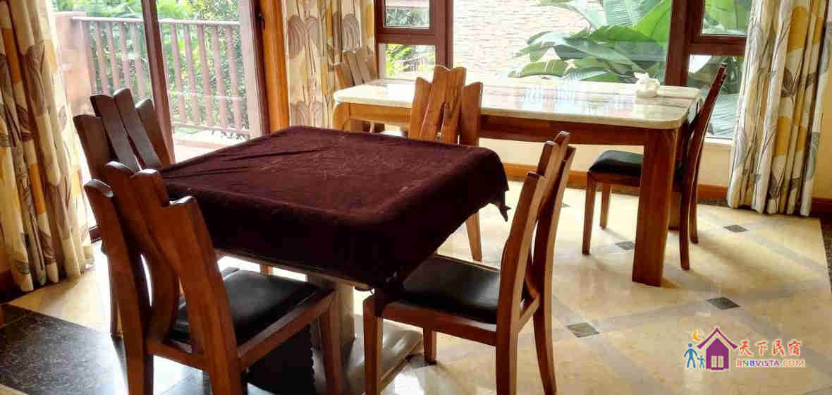 别墅装修属德国风格,洗刷用品、餐厨厨具一应俱全,其中A型别墅有卡拉OK、烧烤炉、麻将台,B型别墅有烧烤炉、麻将台供客人消遣使用,是举家出游、朋友聚会、公司活动的上佳之选。