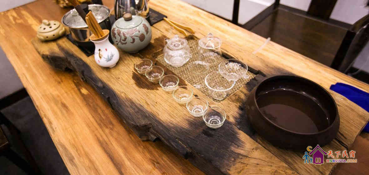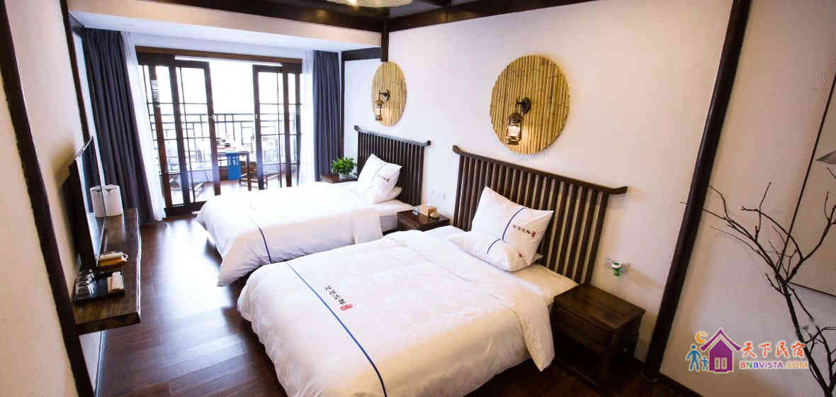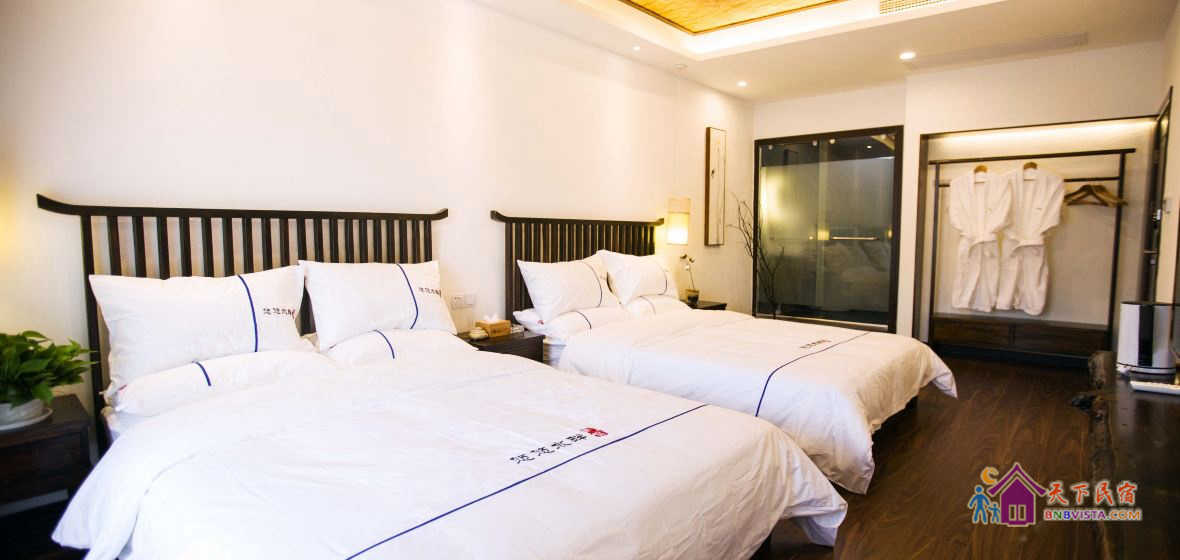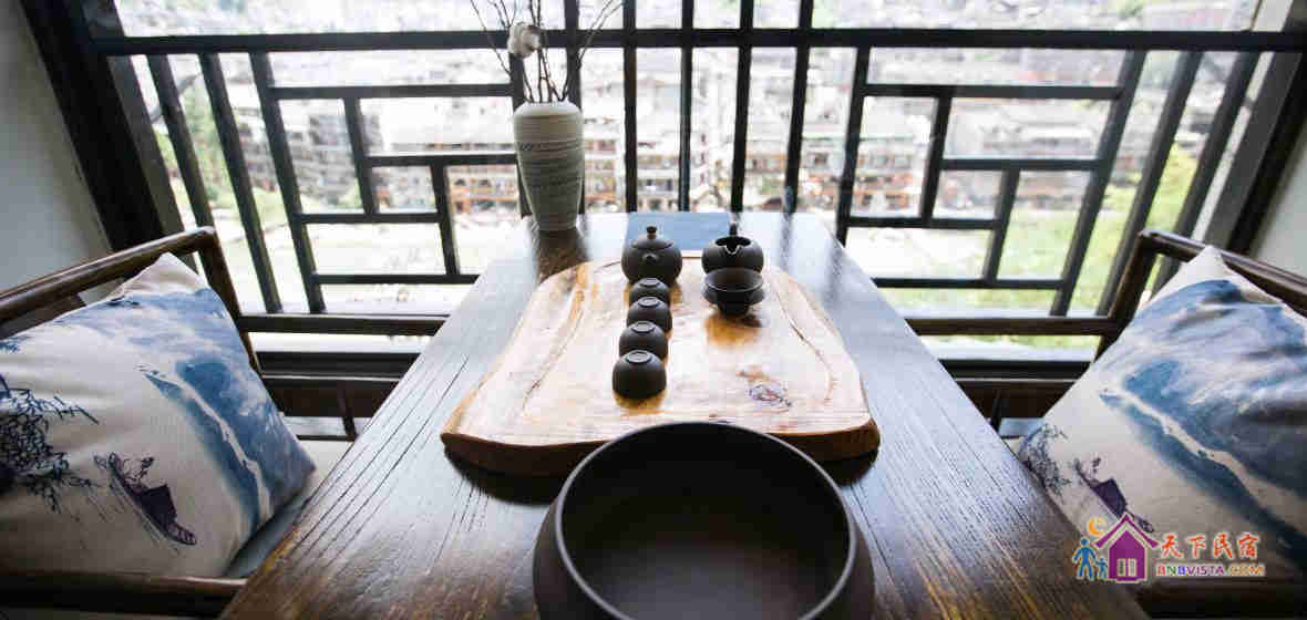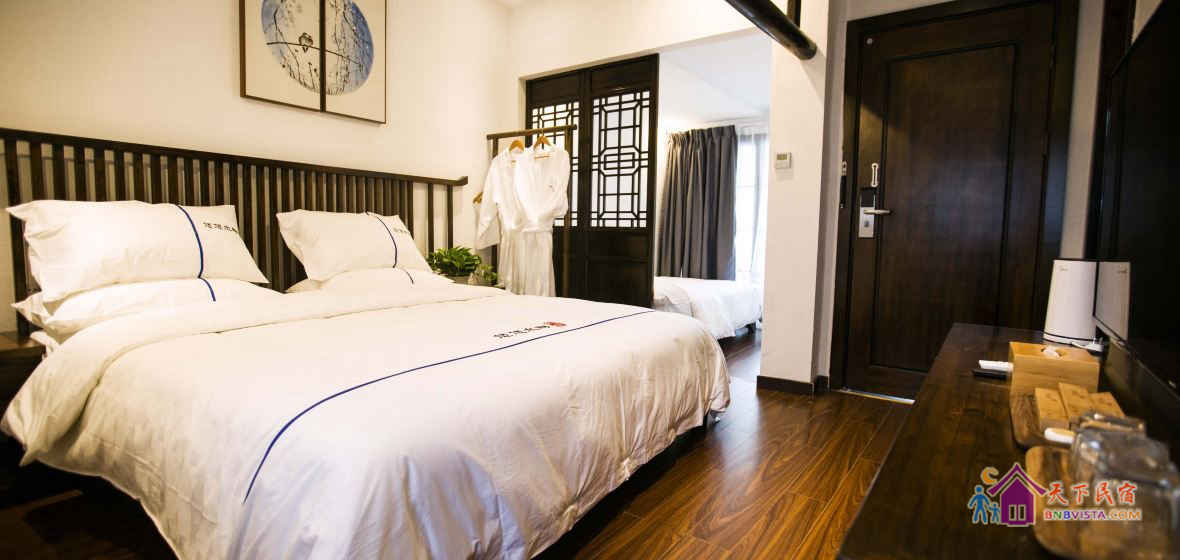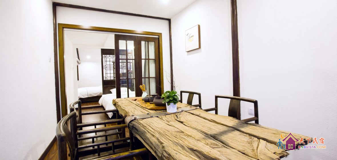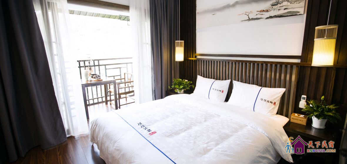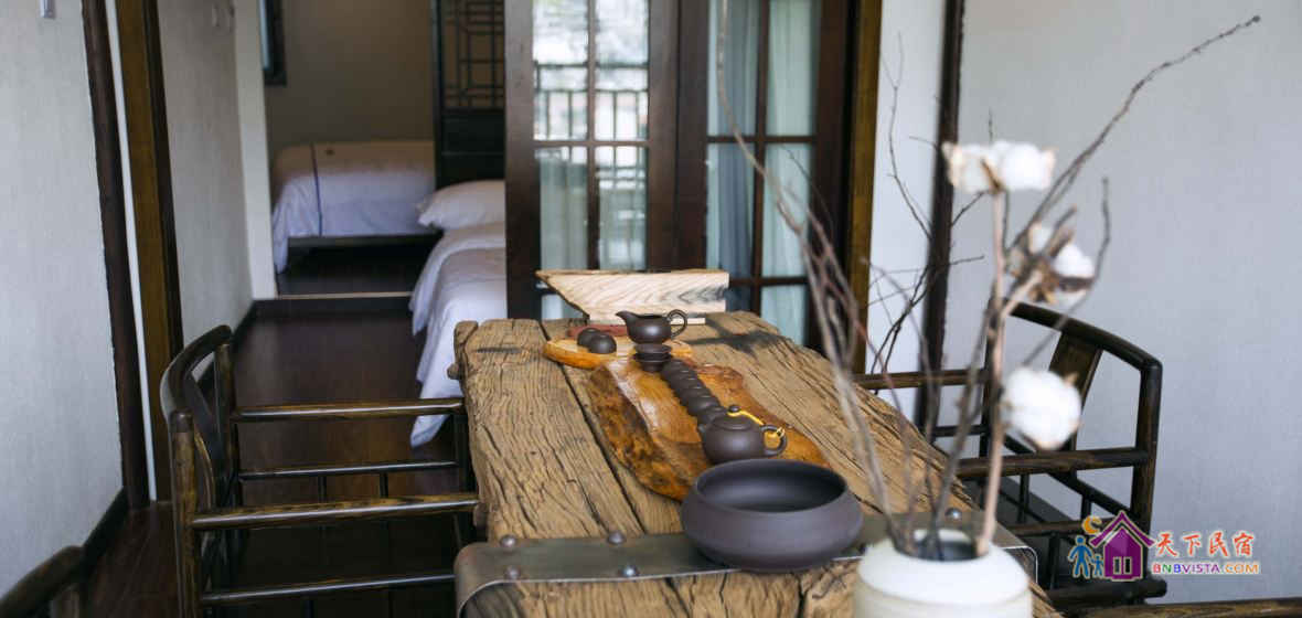 民宿以高端中式民宿,青石瓦房、楠木穿插、室内古典风和中式风格相并结合。劳累之时卧于床,歇息之时坐于阁。房内配有茶具和楠木家具,以服务为灵魂,给你的旅行提供一个舒适温馨不一样的感受。