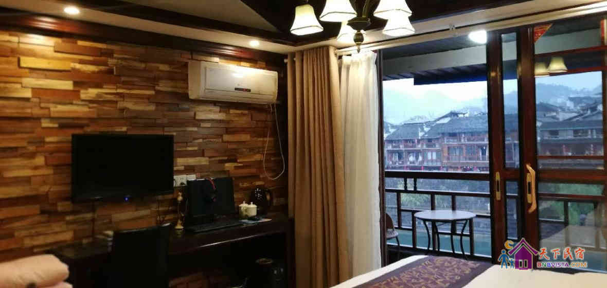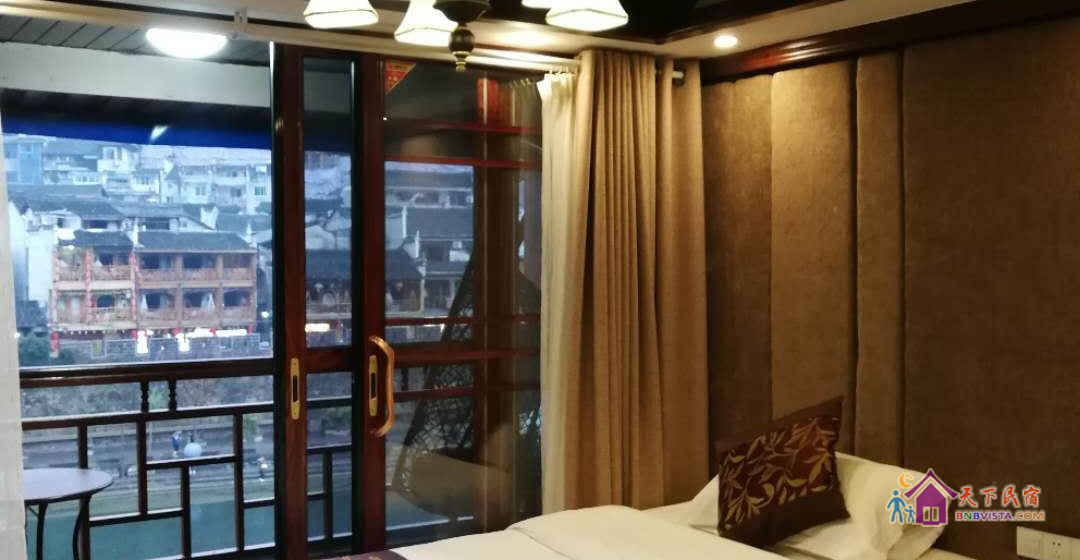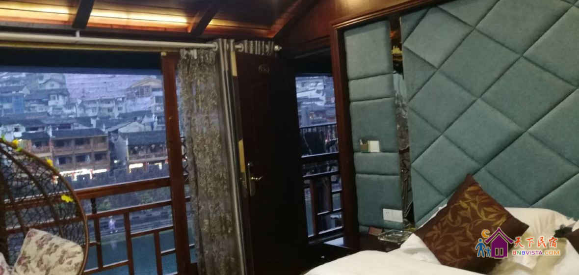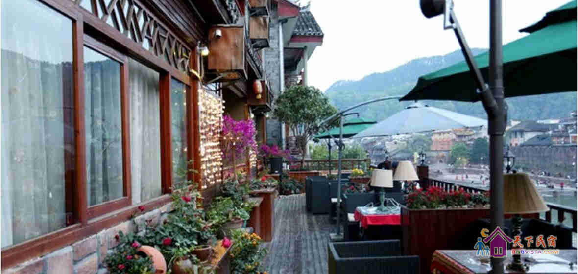 客栈位于沱江畔,黄永玉题词修建的“雪桥”旁。客栈楼下便是“传说中”的跳岩。是具有湘西民族特色的建筑,风景独好,交通便利。离客栈150米处南华桥下有栗湾大型停车场。一楼内设音乐茶座,红酒~咖啡~茗茶简餐~棋牌娱乐。二楼更有凤凰独一无二的大型露天观景台。豪华大床房,各式主题情调房,临江观景房~三楼设有主题客房,望星阁休闲台适合情侣制造浪漫~