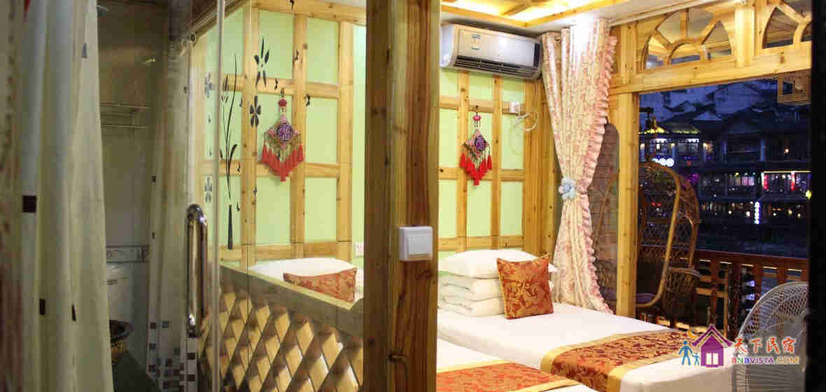 凤凰长志客栈的房间舒适卫生,拥有独立阳台,并且房间内设有宽带线、冷暖空调、独立卫生间等设施。您还可站在阳台上观望,沱江、虹桥、北门城楼的美景,或者晚上悠闲地坐在阳台上一边品茶一边欣赏沱江迷人的夜景,美不胜收。