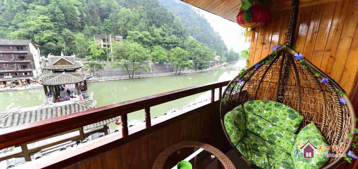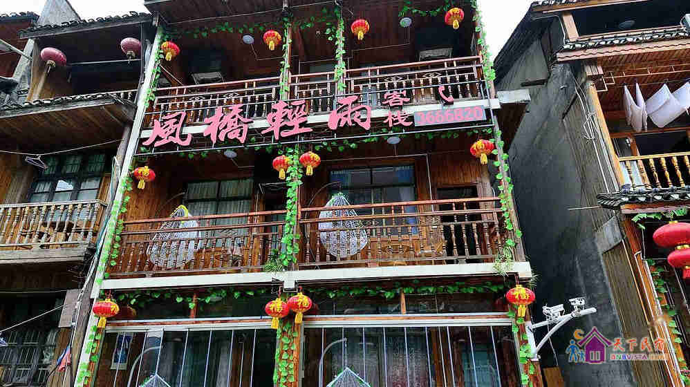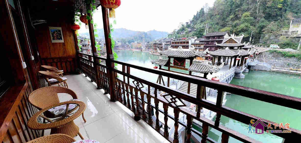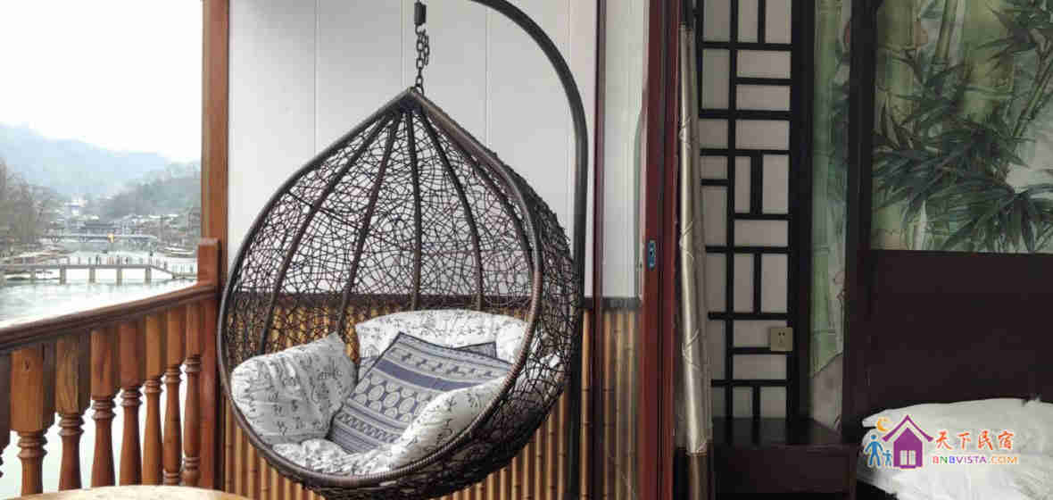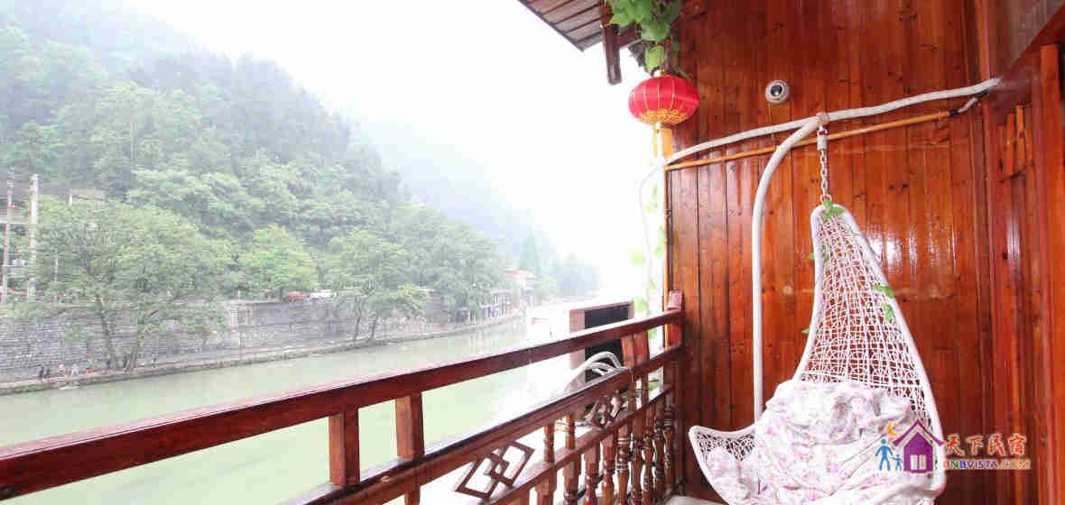 凤凰风桥轻雨临江客栈是一栋4层特色临江吊脚楼;拥有独立阳台、舒适吊篮,清新格调,设施齐全。入住既能享受沱江美丽夜景,又能免于酒吧人流的喧嚣,予您一份洗涤心灵的温馨、恬静。