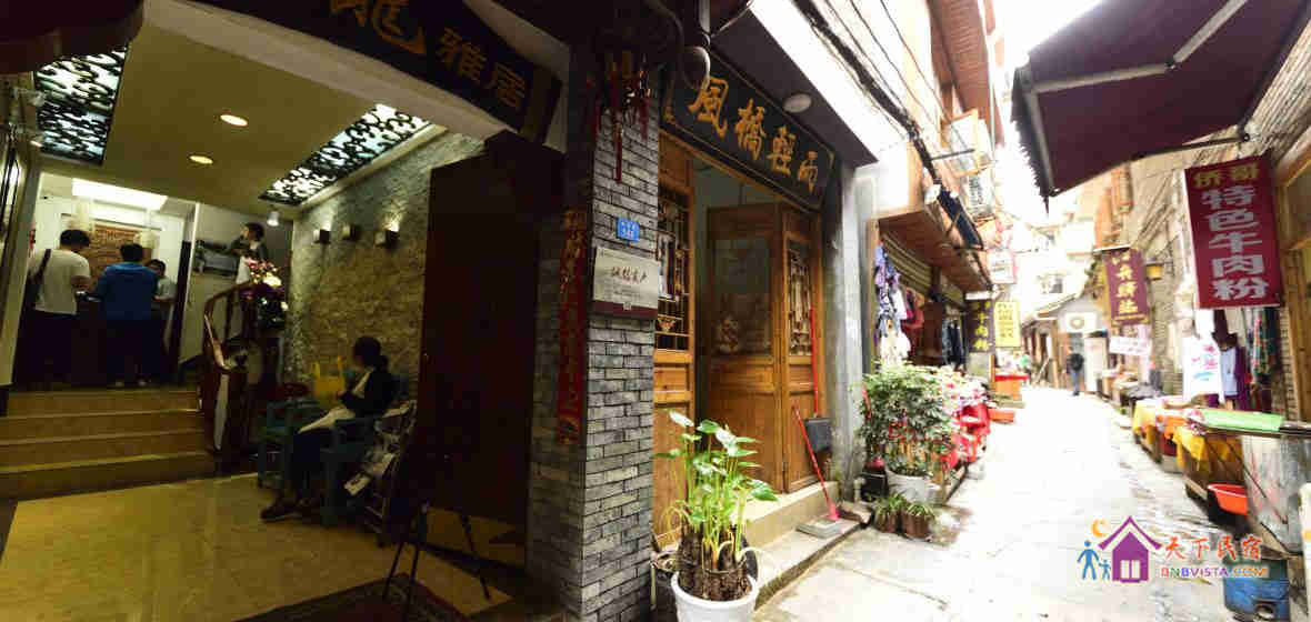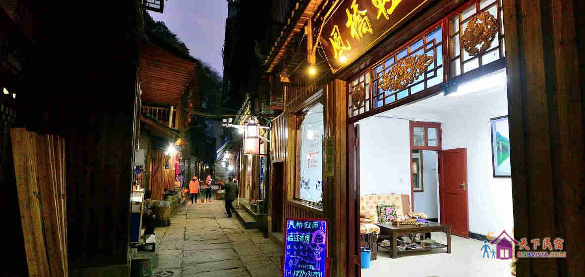 凤凰风桥轻雨临江客栈位于凤凰古城内回龙阁、风桥桥头,前临凤凰古老、最长的青石板小街道,背靠美丽的沱江,近虹桥、万名塔、万寿宫。