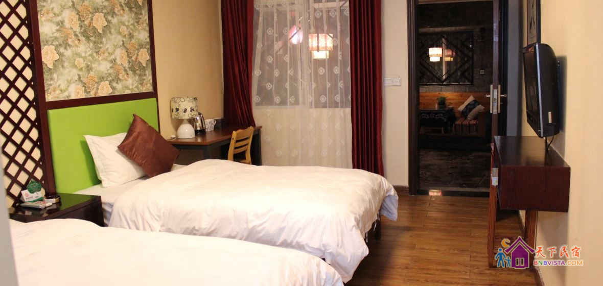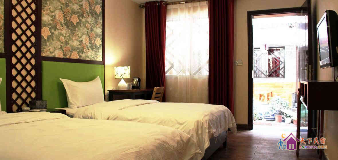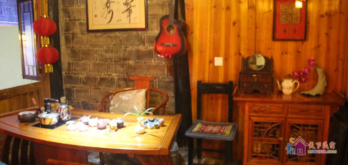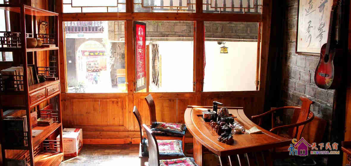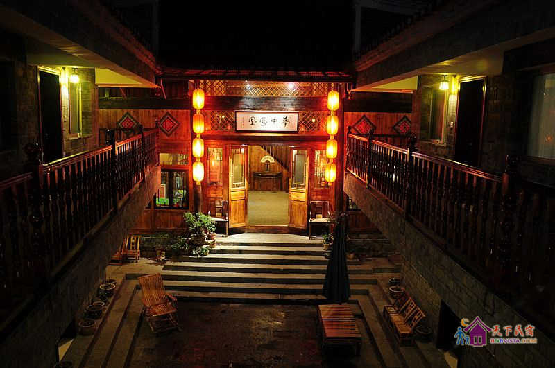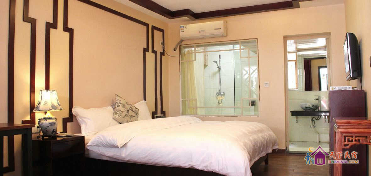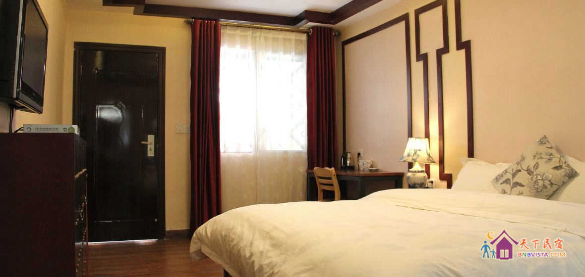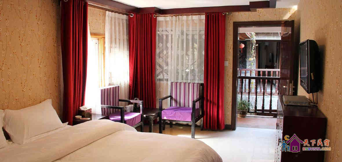 客栈共有19个房间,两侧厢房为简中式特色房,门外配有休闲坐椅。正房大屋为古香古色的百年古楼,为3间纯中式套房。
