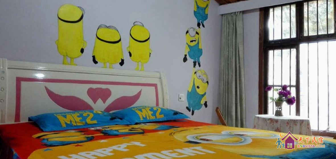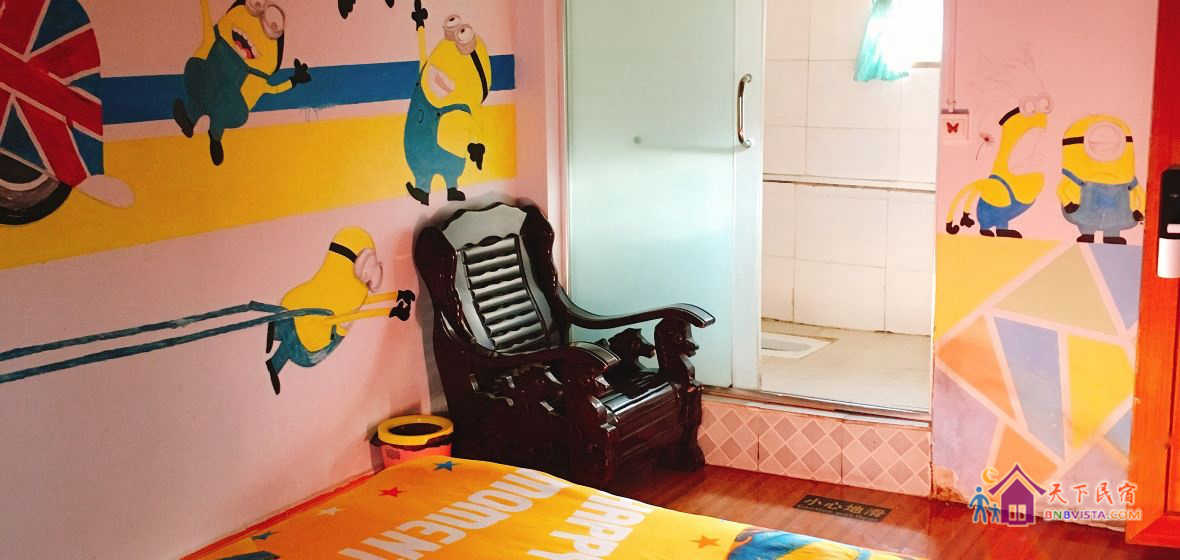 - 所有房型: 小黄人主题阁楼大床房,海贼王榻榻米阳台主题标间,绿意悠悠阁楼大床房,海贼王阳台主题标准间,哆啦 a 梦榻榻米主题亲子三人间,四人间,彩云之南阳台主题标准间,龙猫榻榻米阳台主题标准间,男生三人间床位房(
