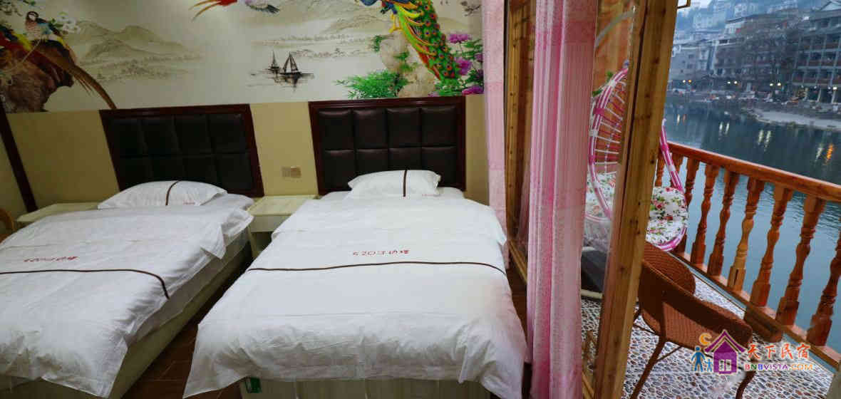 凤凰520江边楼客栈拥有普通标间、夫妻间、三人间、特色临江标间、特色临江单间等多种房型,客房内设施齐全,并有无线网络覆盖,环境温馨,宾馆提供旅游咨询、接站、代办各种景点门票和车票。是宾客前往凤凰旅游观光、度假的理想居停之选。