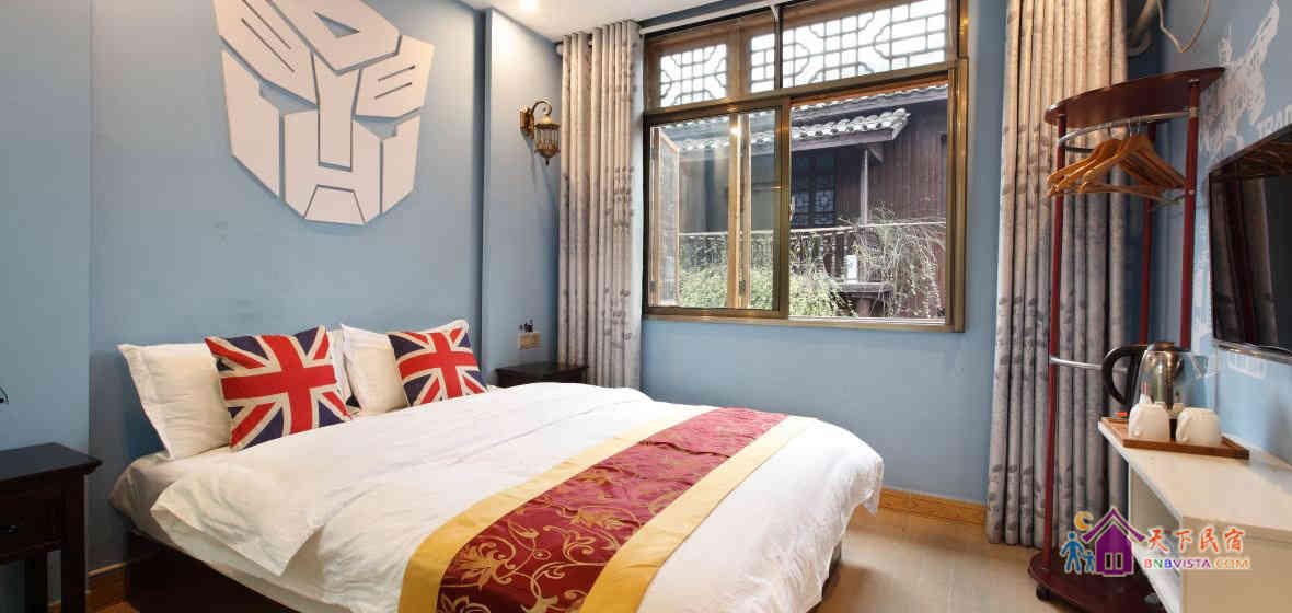 - 所有房型: 特色木板房·主题店,古城风韵标准间·主题店,古城风韵大床房·主题店,水木年华,变形金刚主题大床房·主题店,Hello kitty主题大床房·主题店,特色木板房,悠悠岁月,夕阳余晖双标间,激情足球主题大
