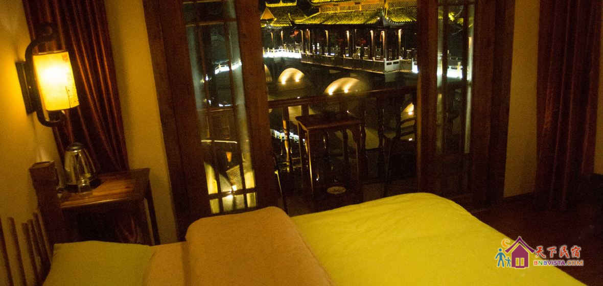 客栈位于沱江下游,推开窗沱江美景和雾桥景色跃然眼眶。在院子中品一杯茶,赏一赏美景好不惬意。夜幕下,满眼的繁星,伴着潺潺的流水,清扬的歌声,这儿就是沐曦堂给予的天籁的生活。
